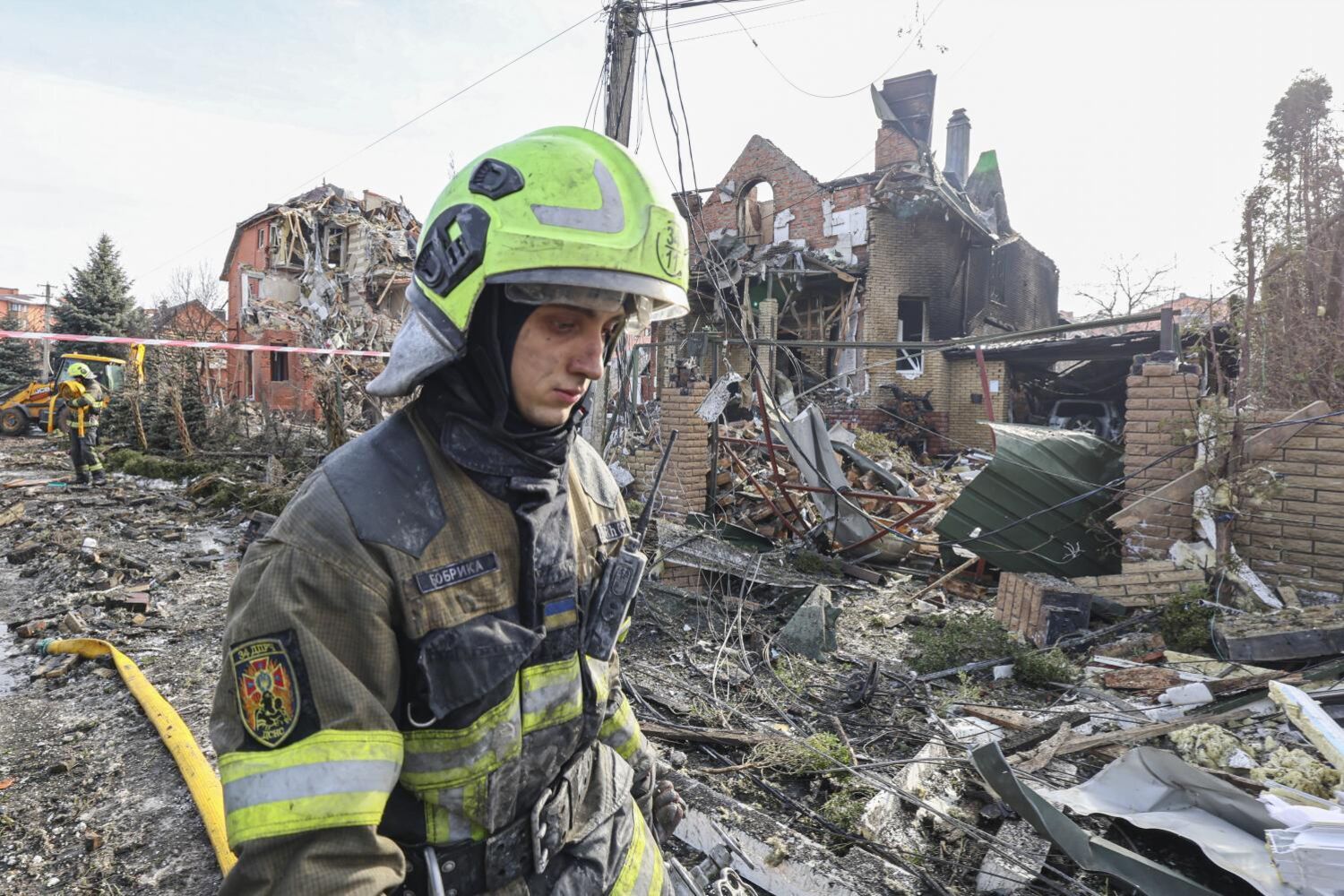 O cheiro a fumo e o aparato da violência das explosões, que reduziram a escombros duas casas de luxo, danificaram outras tantas e causaram danos em dezenas de apartamentos em Sofiivska Borshchagivka, nos arredores de Kiev, atraíram centenas de ucranianos que registaram o pasmo no telemóvel durante todo o dia. O elegante bairro foi um dos pontos atingidos na capital ucraniana numa vaga de ataques particularmente violentos que visaram também outras localidades em vários pontos do país. Ao todo, revelou a Força Aérea da Ucrânia, 50 mísseis e 297 drones de longo alcance foram disparados para solo ucraniano na madrugada deste domingo, o que fez soar as sirenes pouco antes das 4h00 da manhã. Os militares de Kiev dizem que 33 mísseis e 274 drones foram abatidos nesta ofensiva que causou um morto e 17 feridos na zona da capital. A vítima mortal do ataque foi registada em Fastiv, a 50 quilómetros de Kiev, quando um prédio desabou.