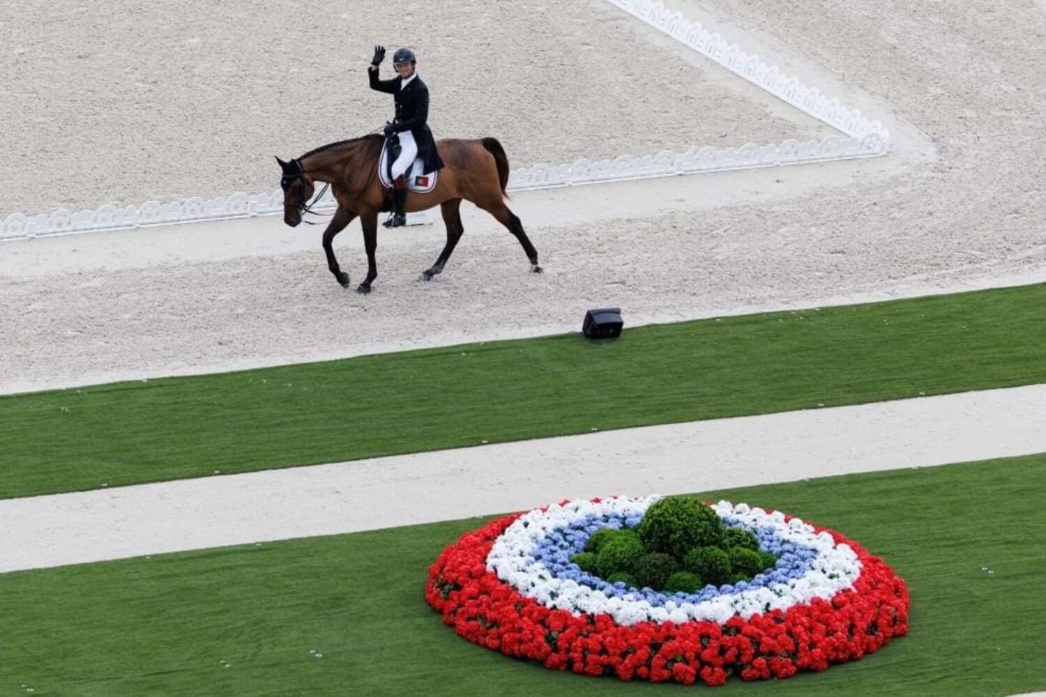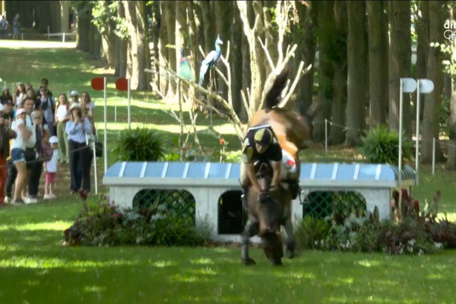 Depois de ter concluído o dressage no 59.º lugar, com 40,90 pontos de penalização, no sábado, Manuel Grave foi vítima de uma queda quando tentava ultrapassar um dos obstáculos do percurso no Palácio de Versalhes.