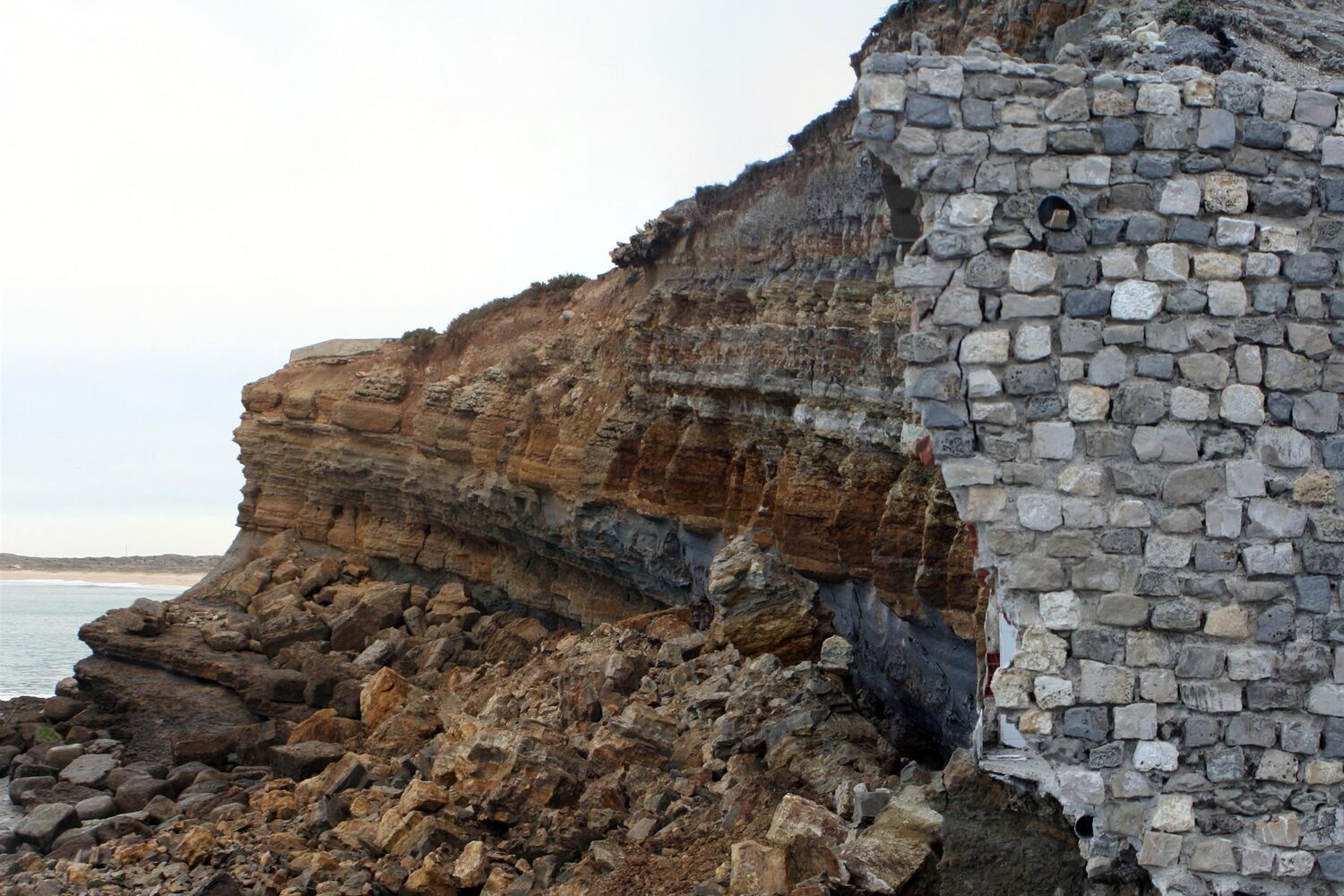 Recentemente, parte da falésia e da muralha da Fortaleza da Consolação, em Peniche, ruíram.
