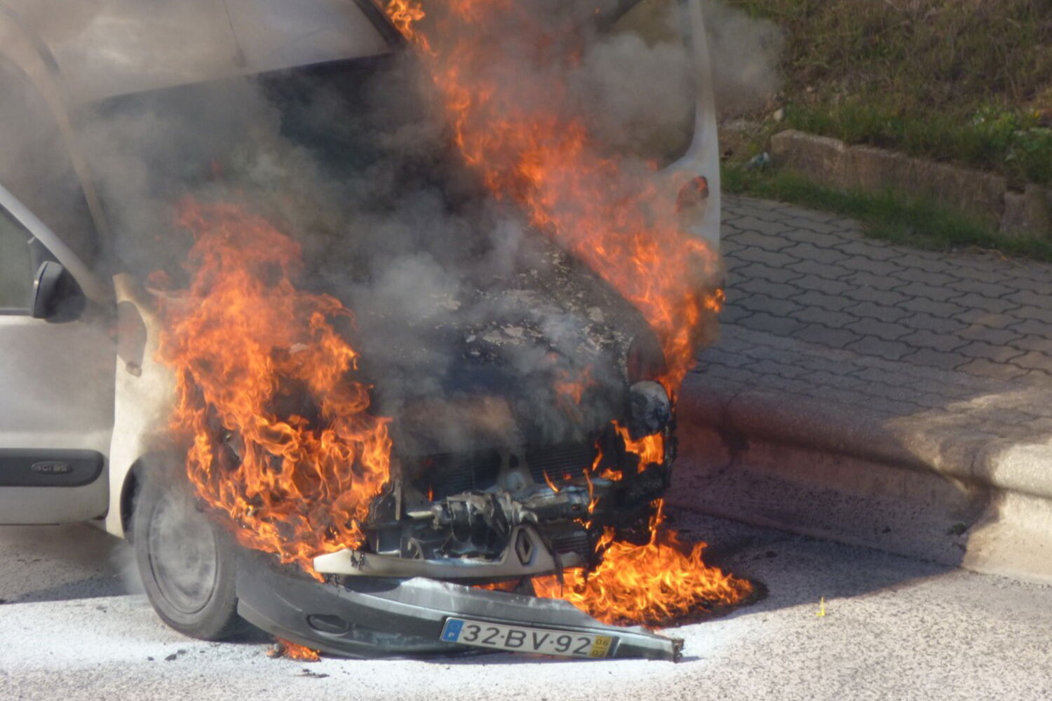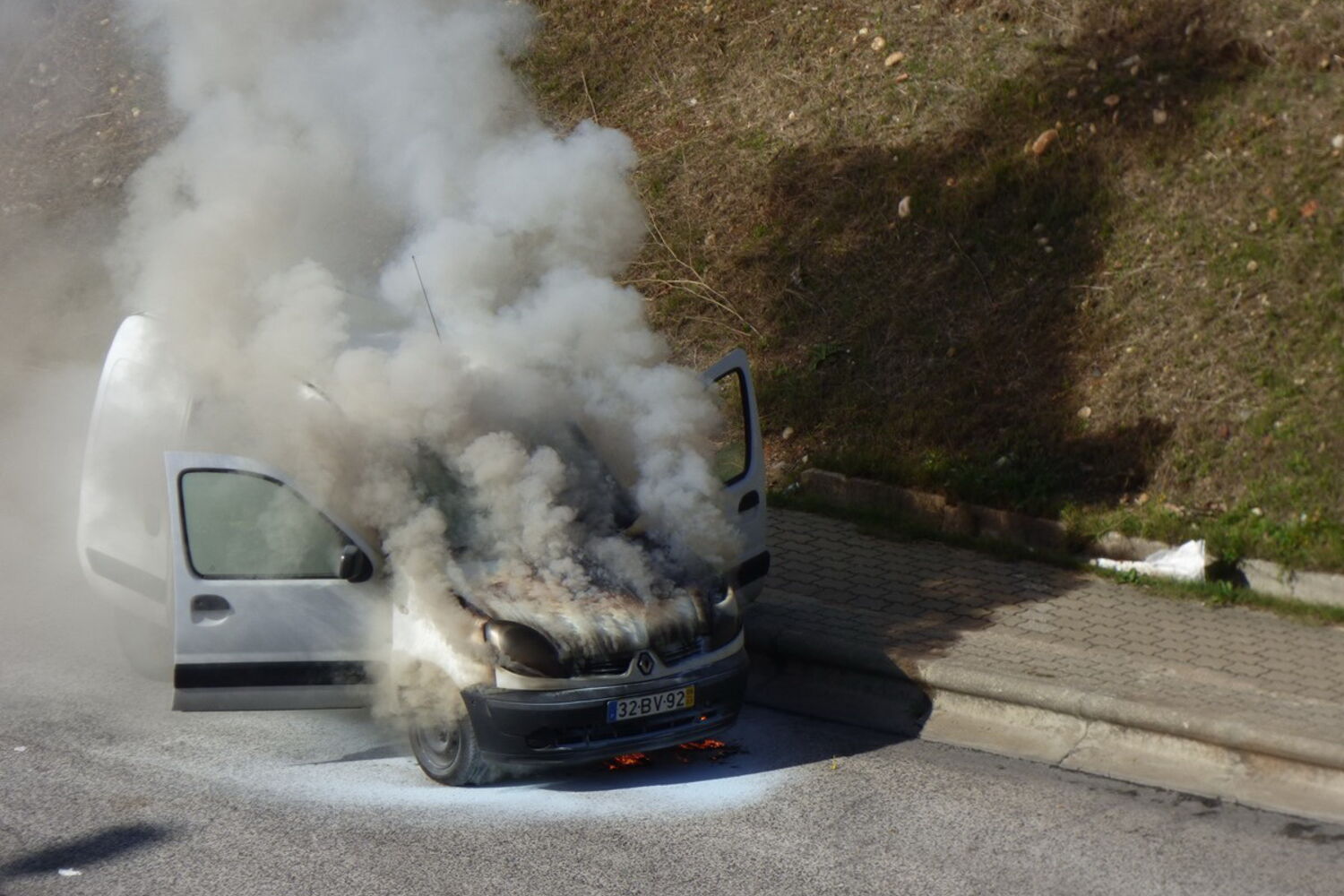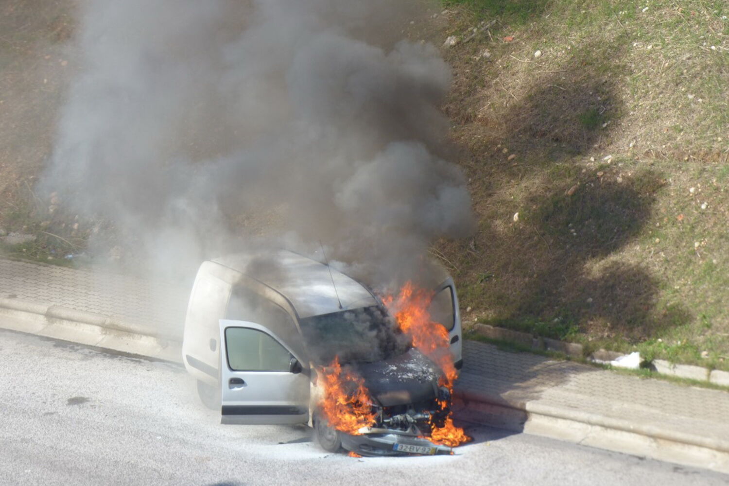 Carro despistou-se e começou a arder.