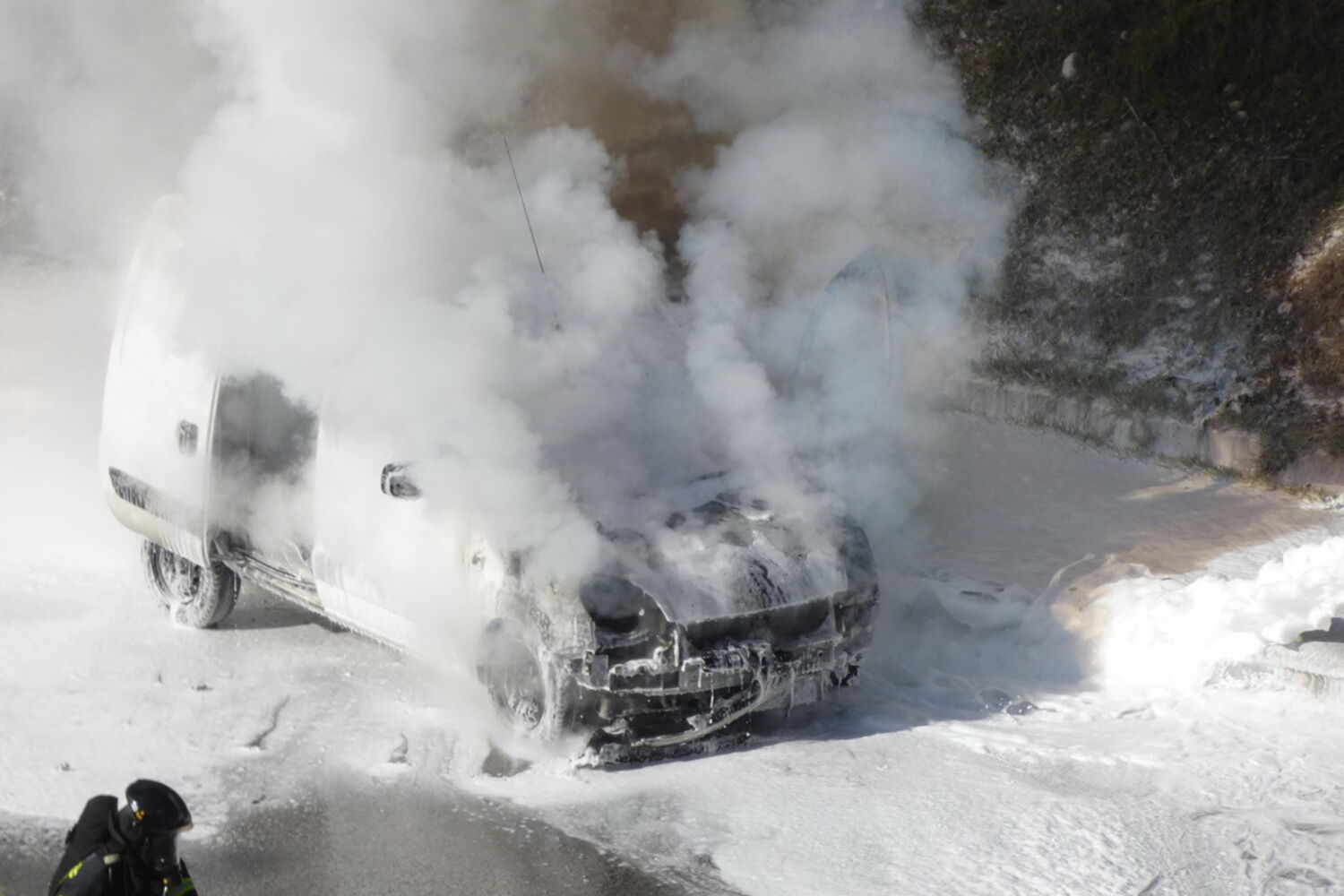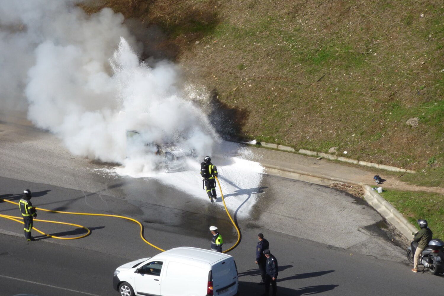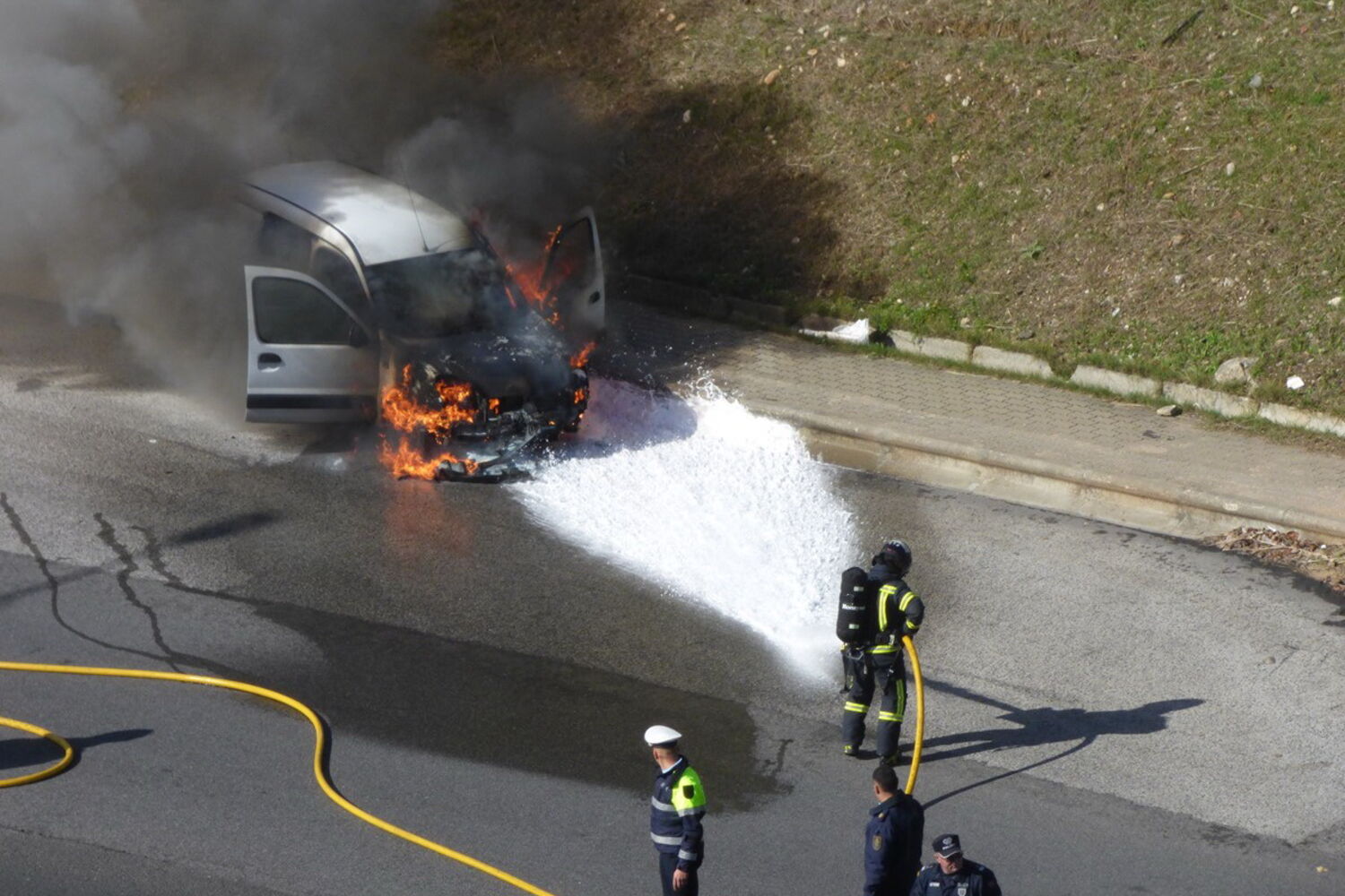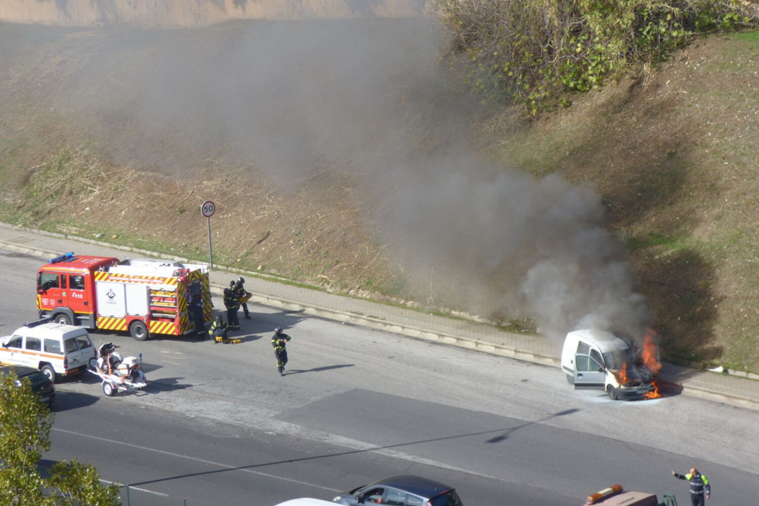 Carro despistou-se e começou a arder.