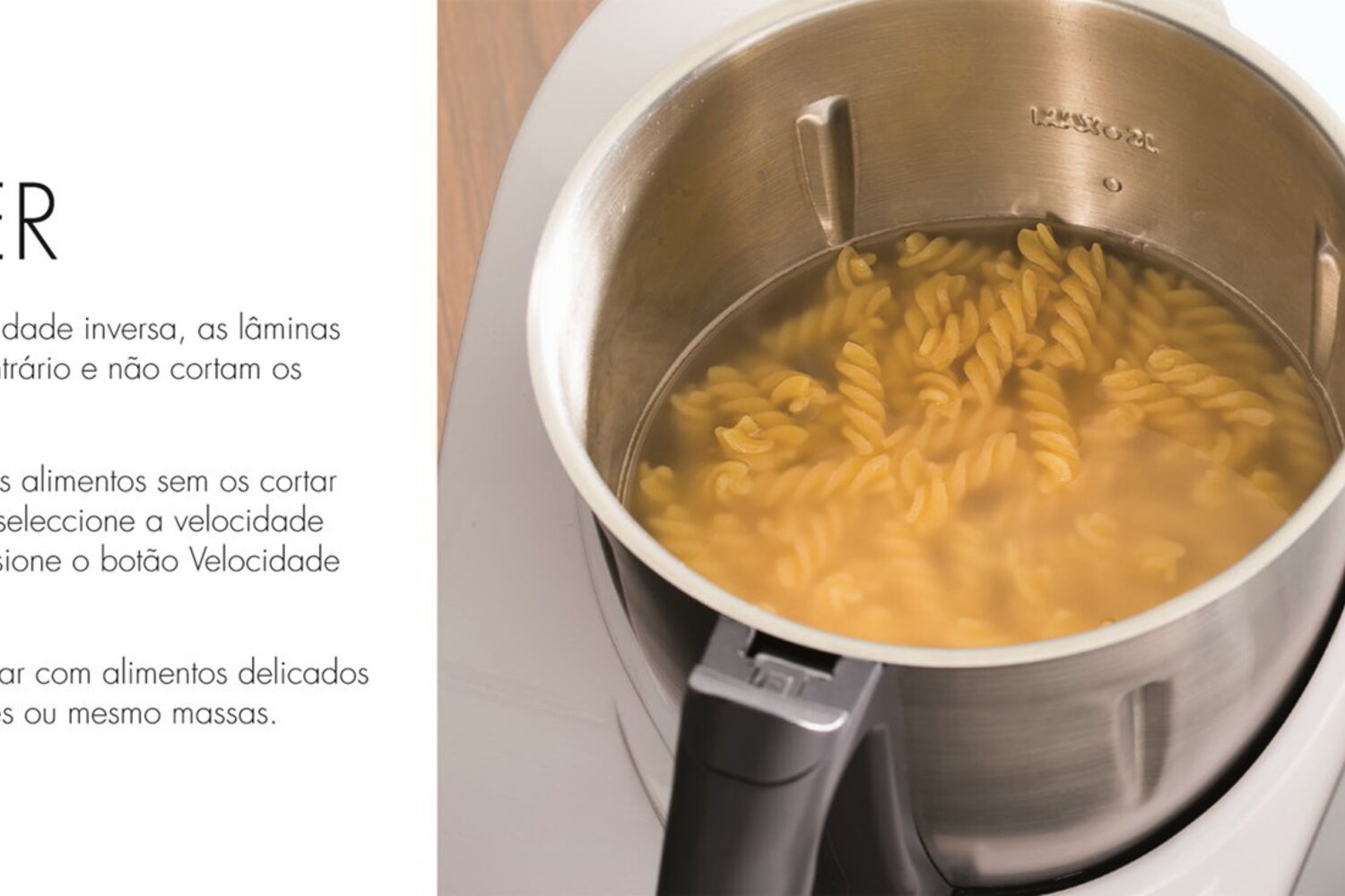 C, velocidade inversa, lâmina que tritura e mistura, vaporeira e cesto de cozedura, função turbo e 10 velocidades. Estas são as características da máquina que vai mudar a sua cozinha e os seus cozinhados. Mais, vai poupar dinheiro, espaço e, acima de tudo, muito tempo.