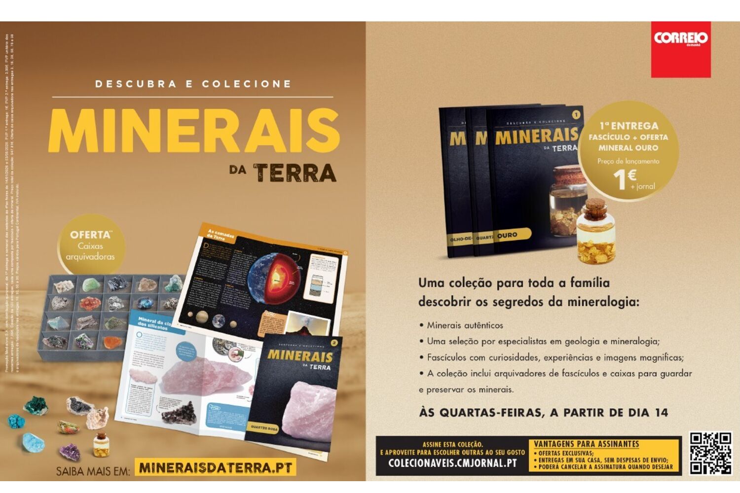 Não perca, 1ª entrega Fascículo + Oferta de mineral Ouro, por apenas 1€, com os seu Correio da Manhã.