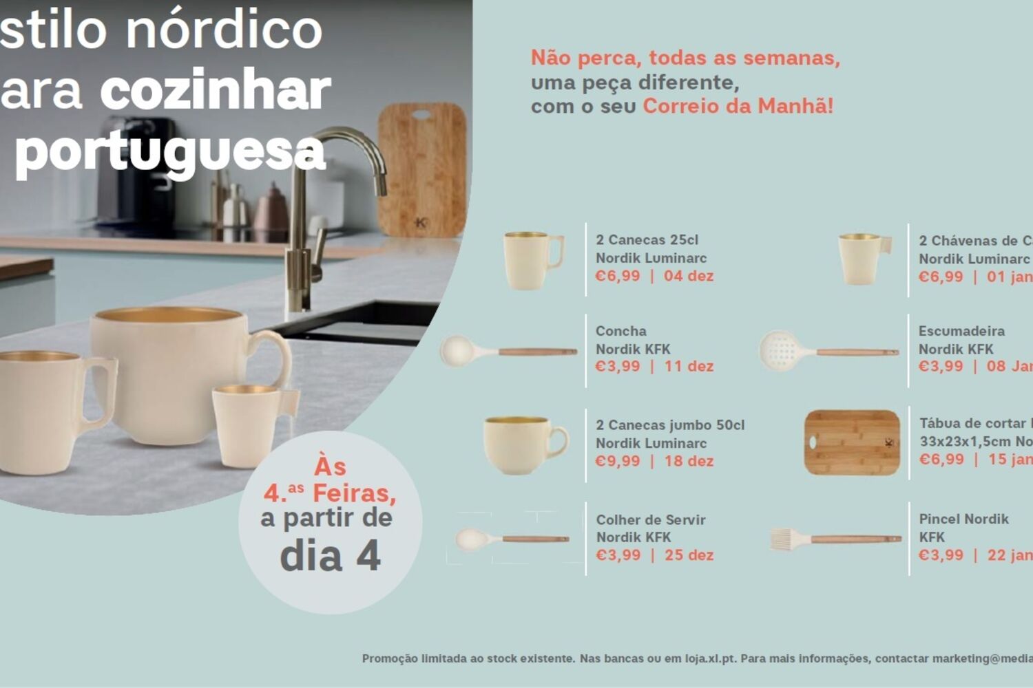 O Correio da Manhã traz a elegância e simplicidade do design nórdico à sua cozinha. São 8 utensílios em diferentes materiais, como cerâmica e bambu, indispensáveis no seu dia a dia.Não perca, todas as quartas-feiras uma peça diferente, com o seu Correio da Manhã!