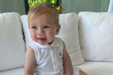 Tenista Anna Kournikova mostra imagem da pequena Mary, que tem agora cinco meses.