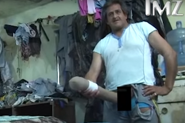 Se não estiver ereto, o órgão genital deste homem tem um comprimento de cerca de 48 centímetros.