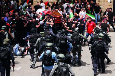 Forças de segurança israelitas carregaram sobre o cortejo fúnebre de Shireen Abu Aqleh, quase fazendo com que o caixão caísse no chão.