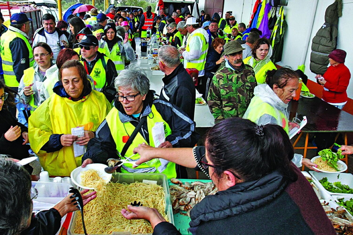Nalguns locais, há tendas para os peregrinos pernoitarem antes de recomeçarem a caminhada. As equipas itinerantes têm ambulâncias.