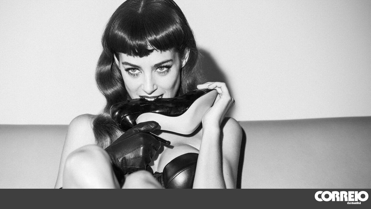 Atriz veste-se de cabedal, na pele de uma dominadora, para a sessão fotográfica ousada.