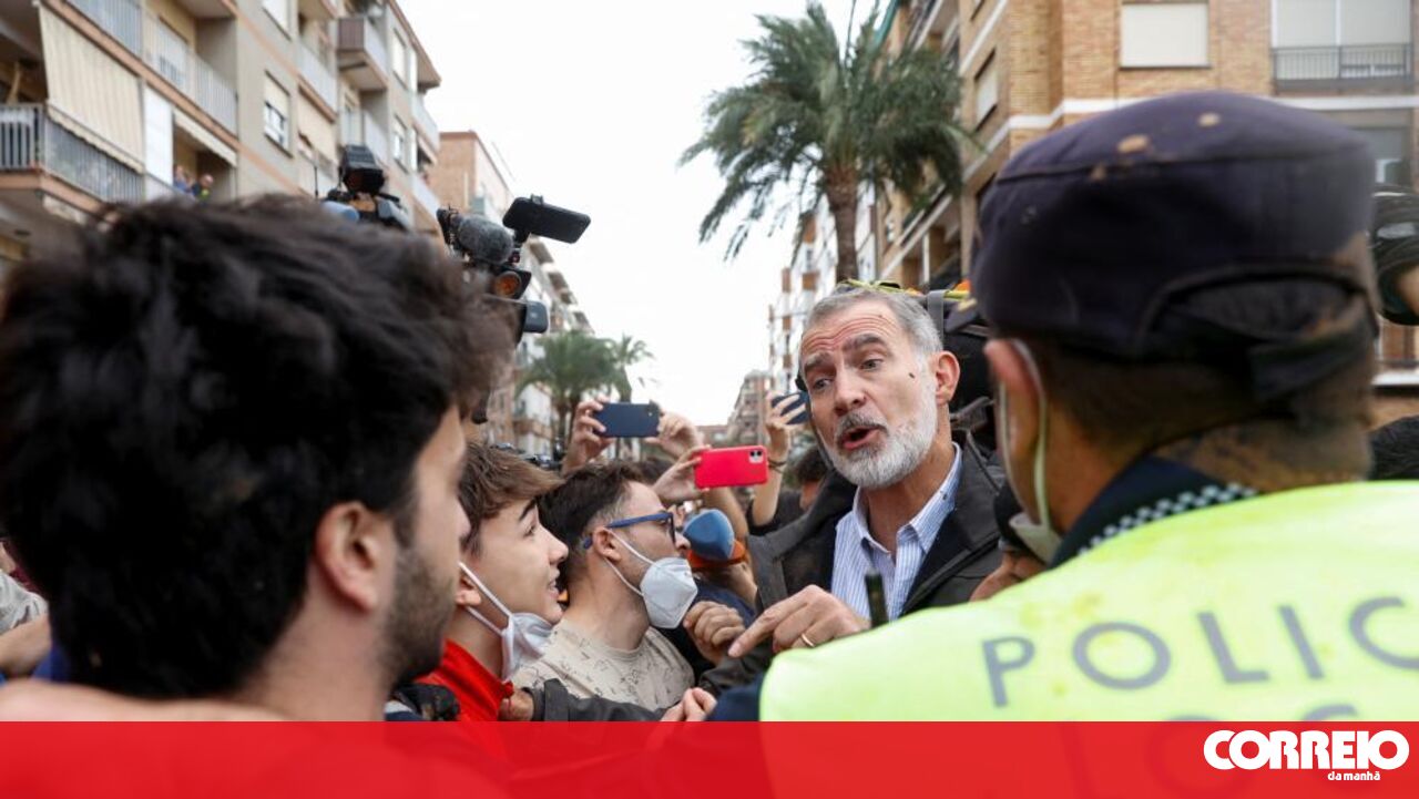O rei Felipe VI e a rainha Letizia visitaram Paiporta, um dos locais mais afetados pelas cheias que já mataram mais de 200 pessoas.