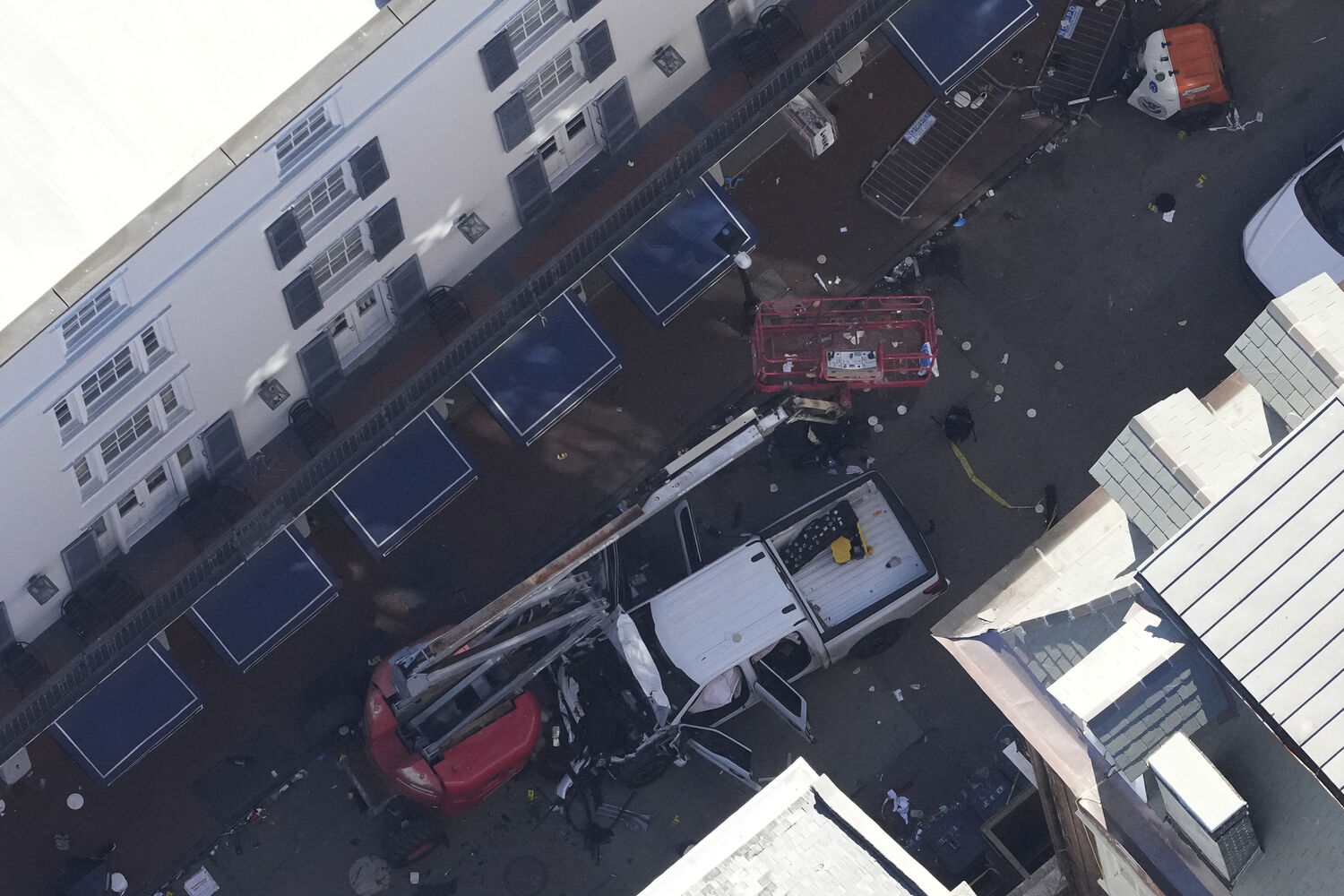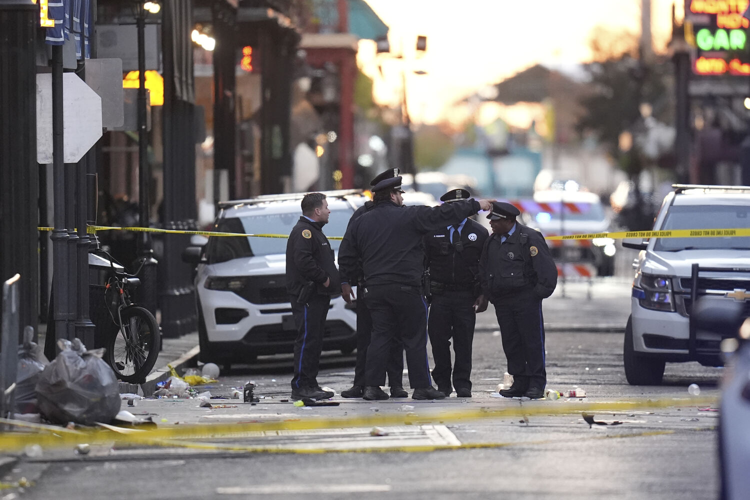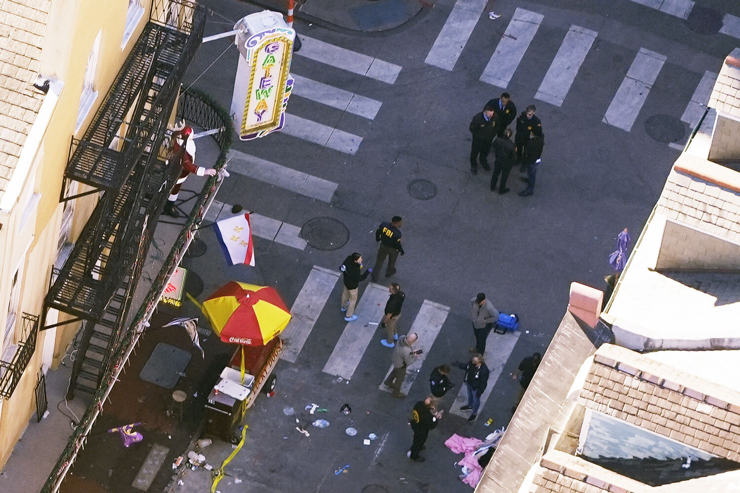 A Bourbon Street, em Nova Orleães, EUA, acordou com lixo nas ruas e um forte patrulhamento policial, ao mesmo tempo que agentes do FBI recolhiam vestígios do crime da noite de passagem de ano, quando um veterano do Exército avançou sobre a multidão e matou 15 pessoas.