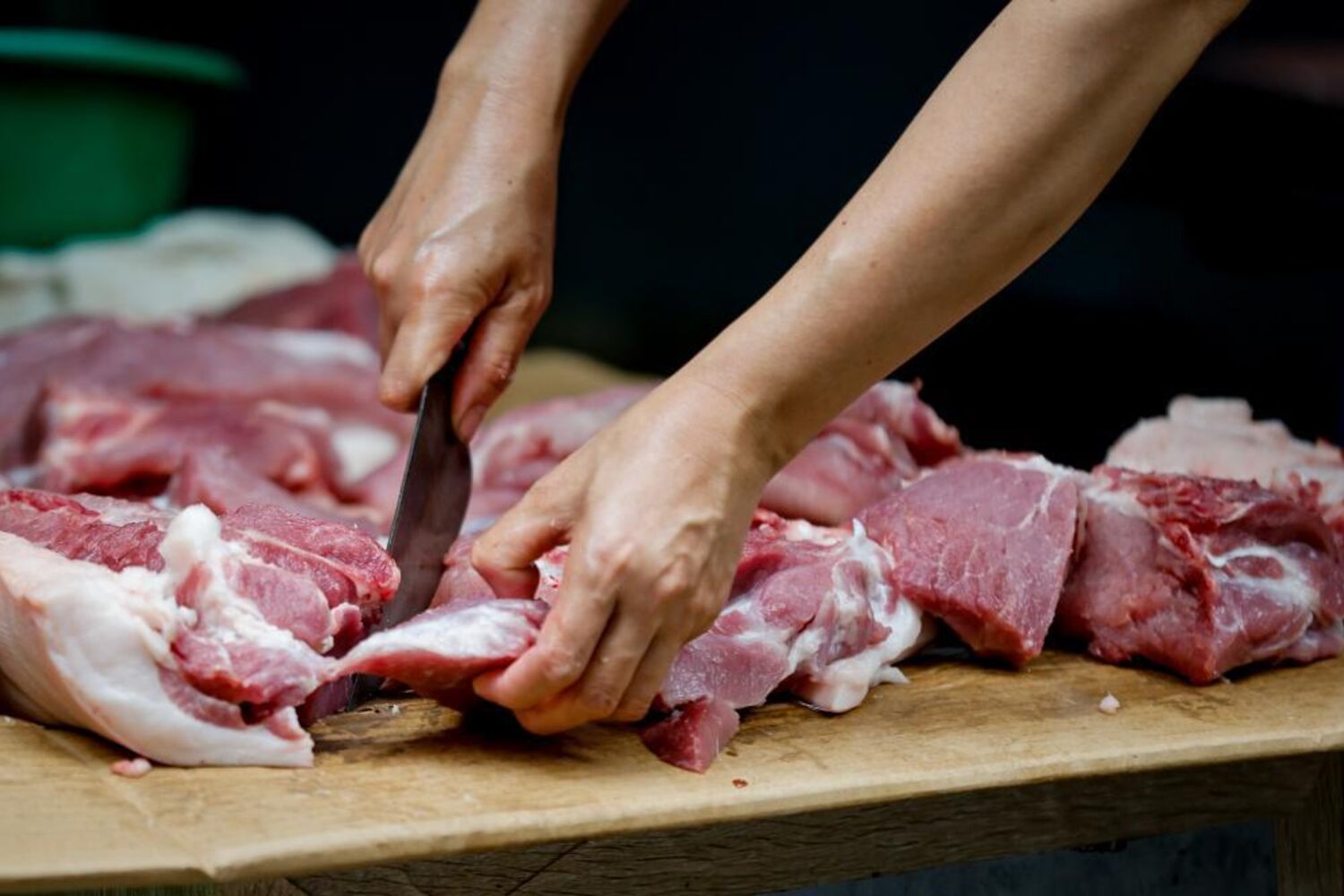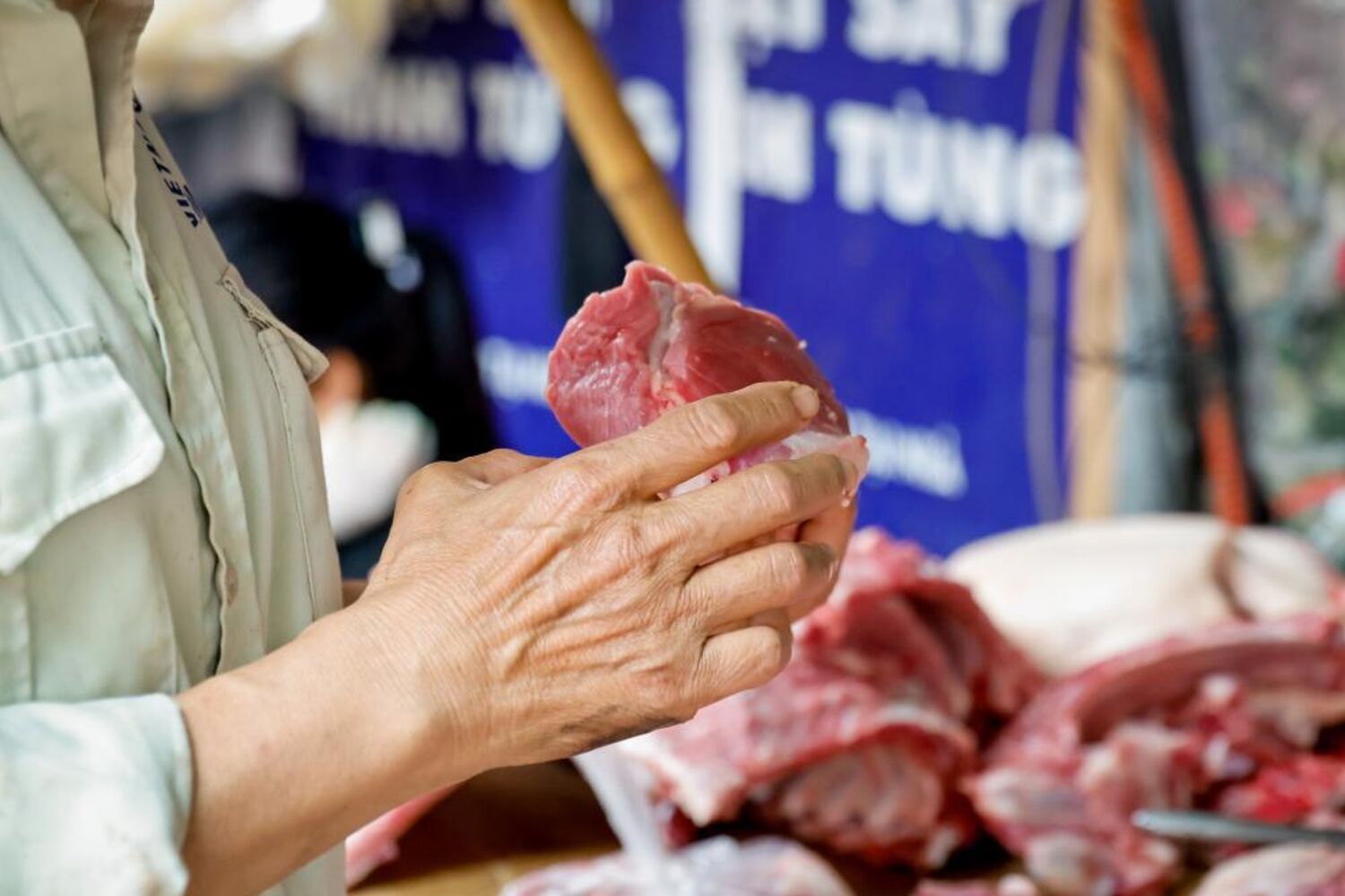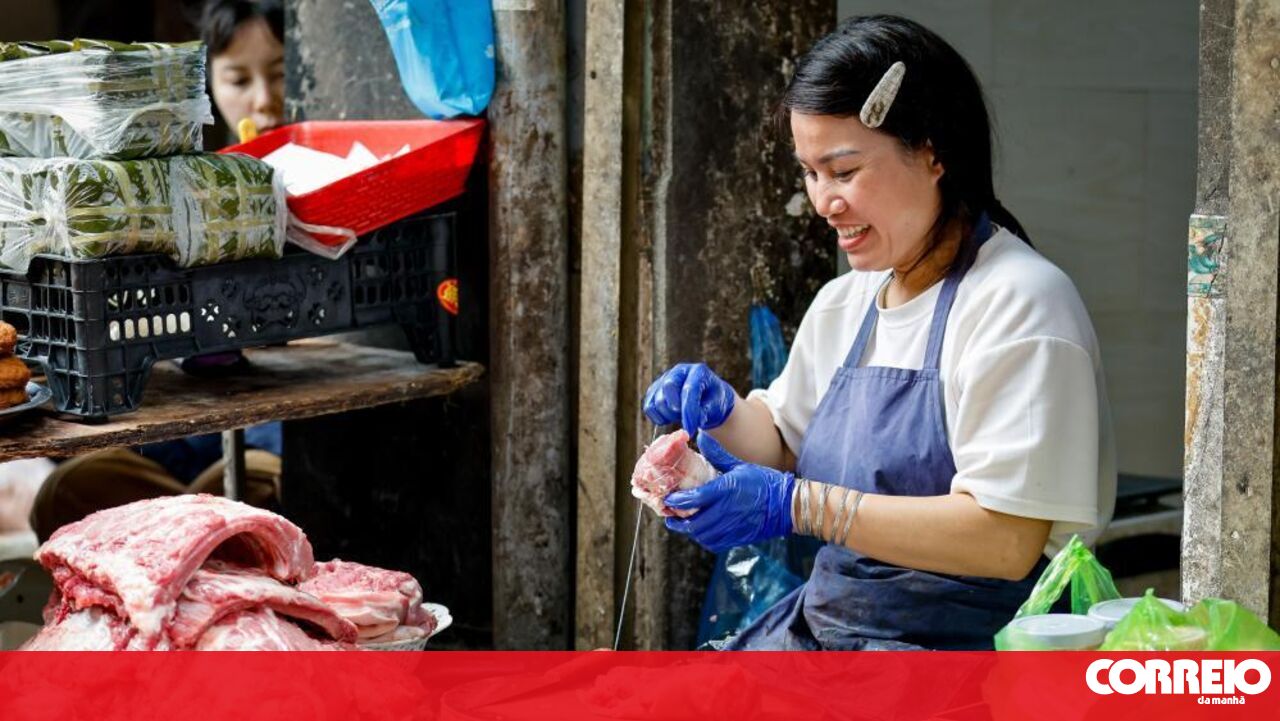 Imagens mostram comerciantes no mercado de Hánoi, no Vietname, a vender carne de porco depois de as autoridades apreenderam centenas de toneladas contaminadas.