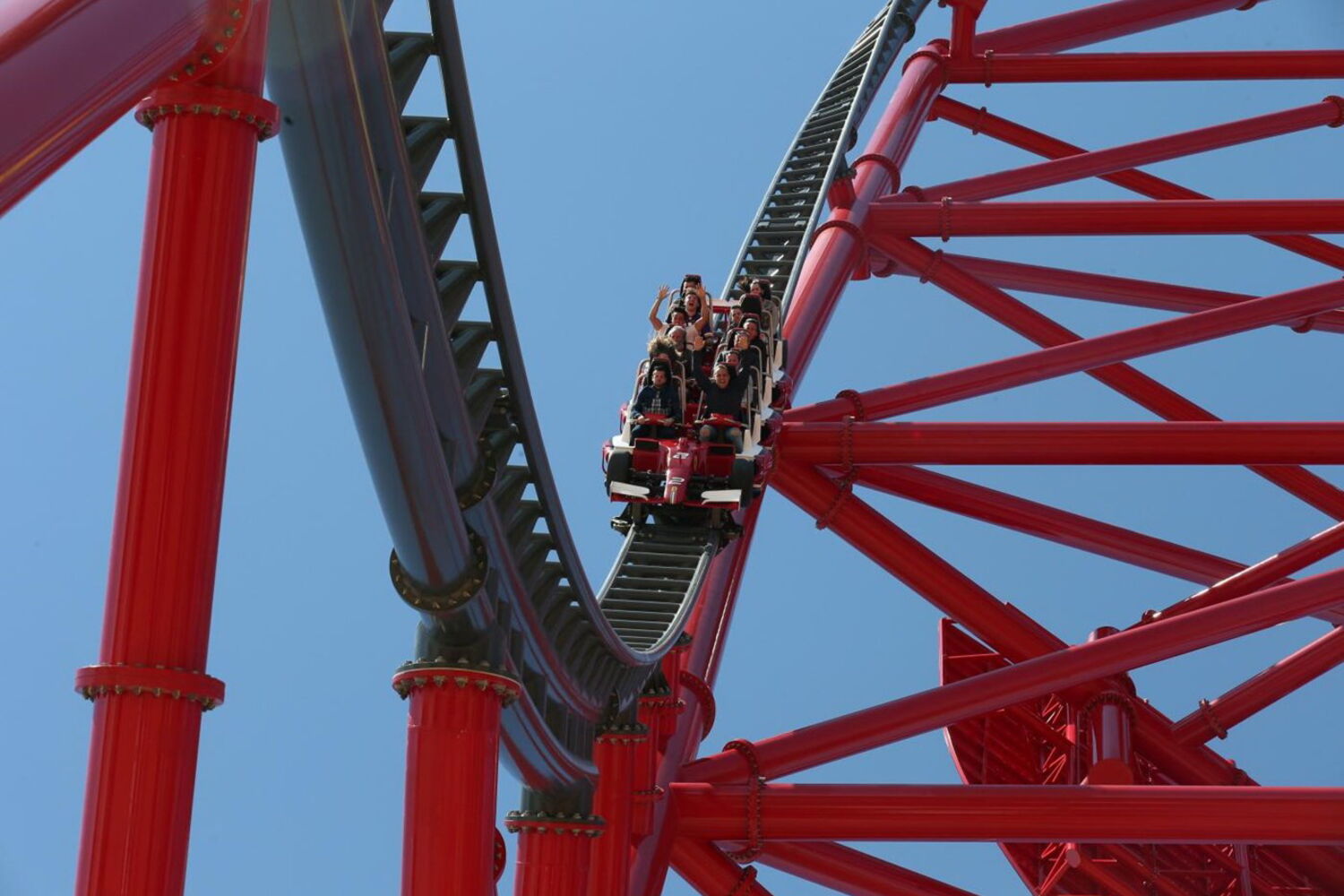 Ferrari Land, no resort PortAventura, em Barcelona, já abriu. Conta com a montanha-russa mais rápida da Europa.