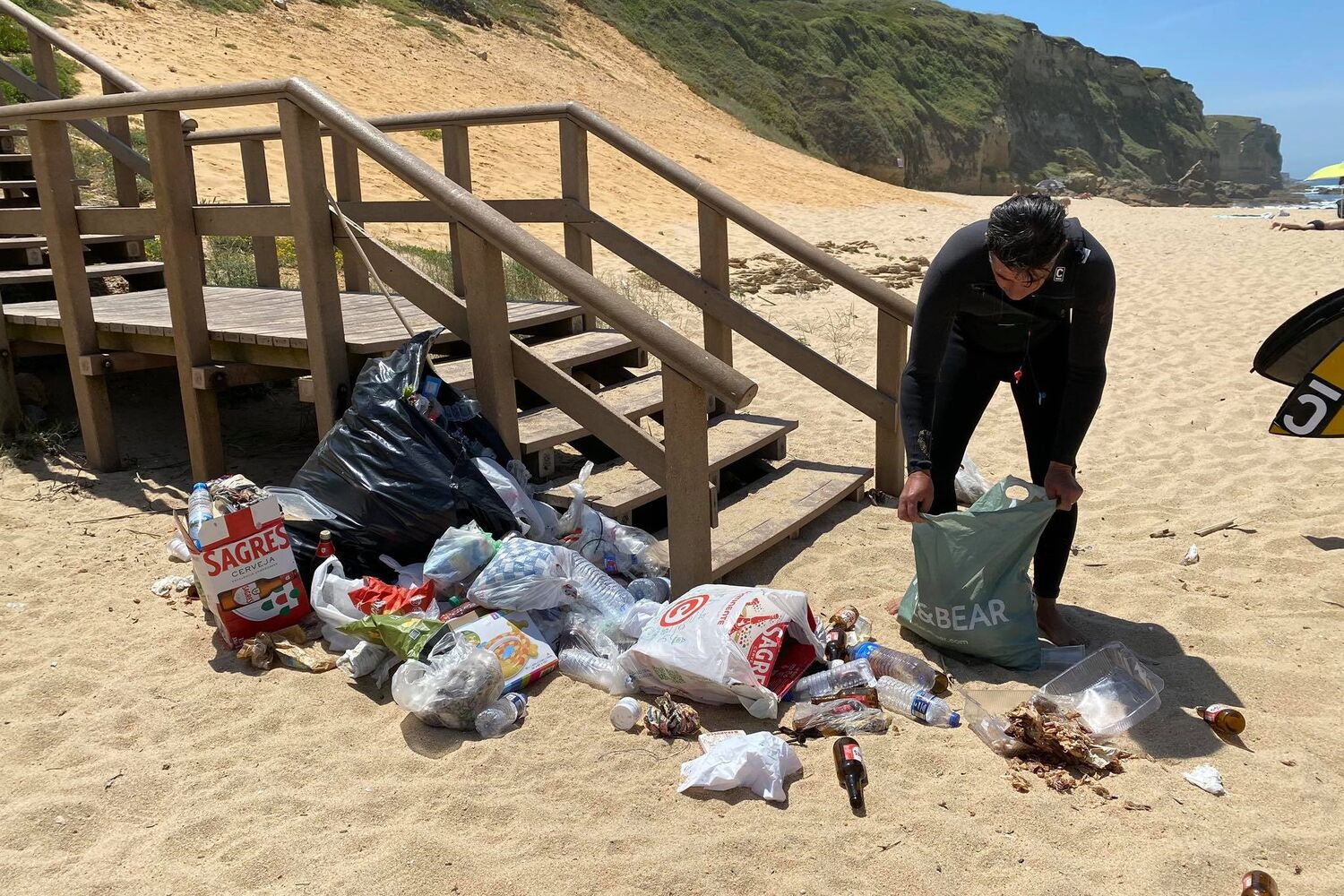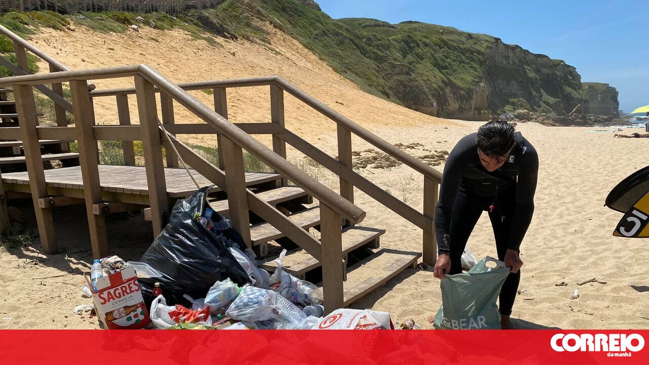 Fotografias do clube de surf de Sesimbra mostram o lixo deixado pelos banhistas.