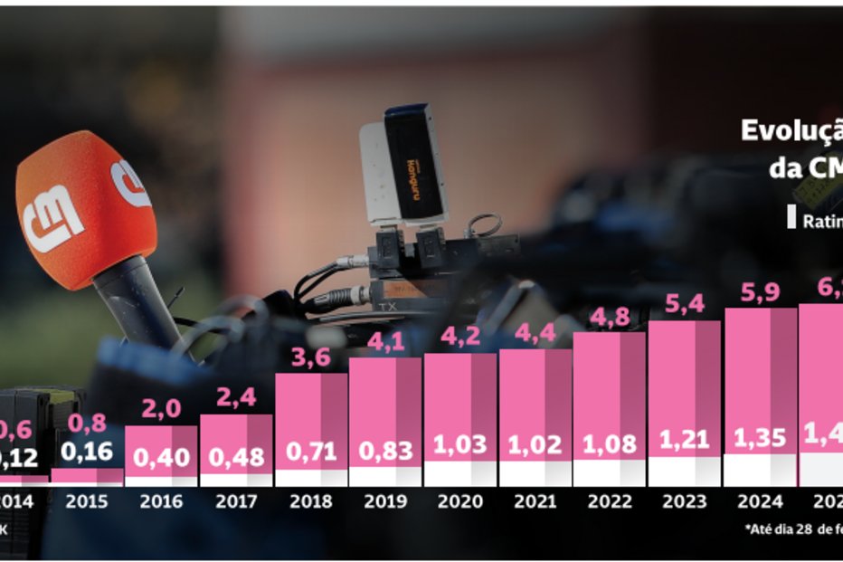 Em fevereiro, a CMTV alcançou um share média diário de 6,5%, com 152 mil espectadores, em média, por minuto, em cada dia.