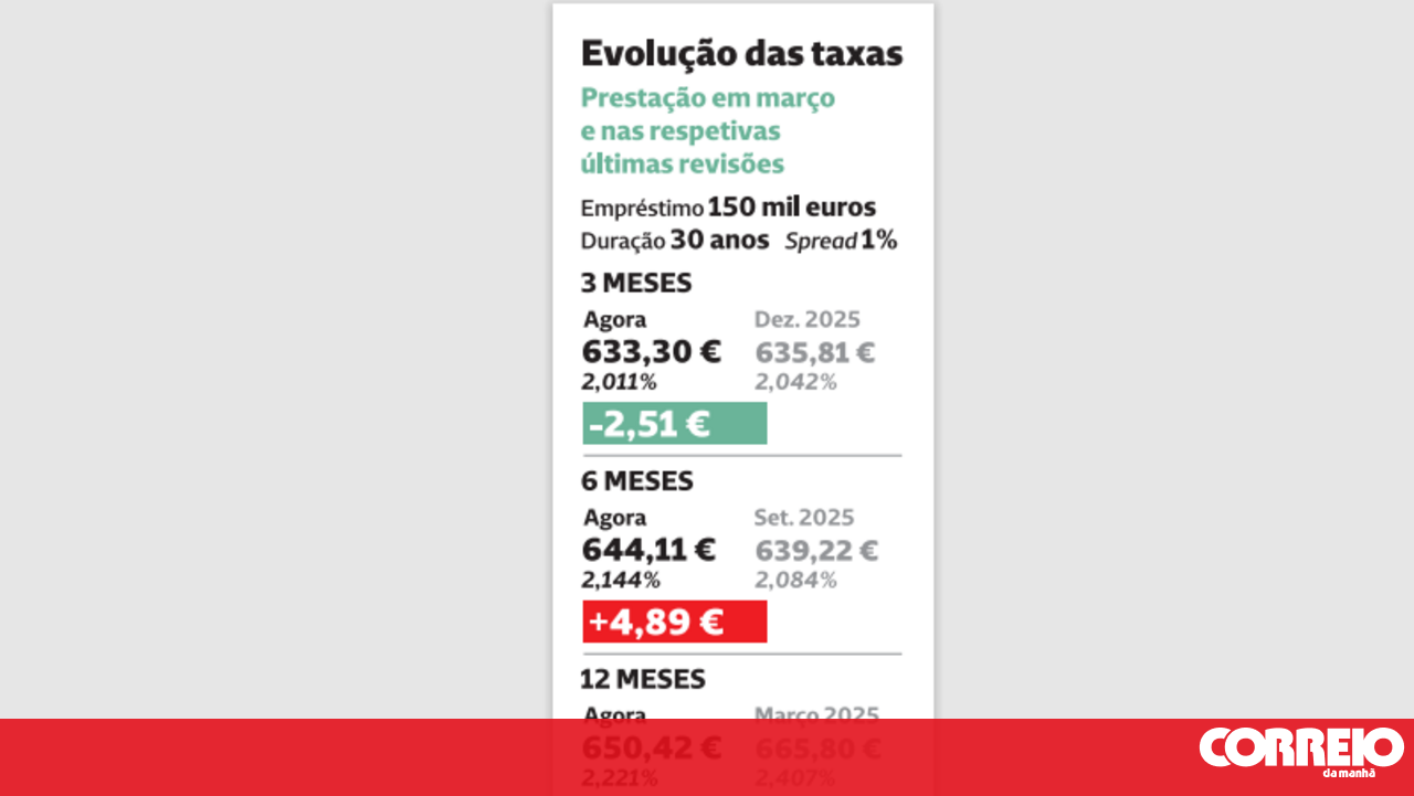 Créditos com o prazo mais utilizado ficam mais caros. Aumento é de quase cinco euros para um empréstimo de 150 mil euros.