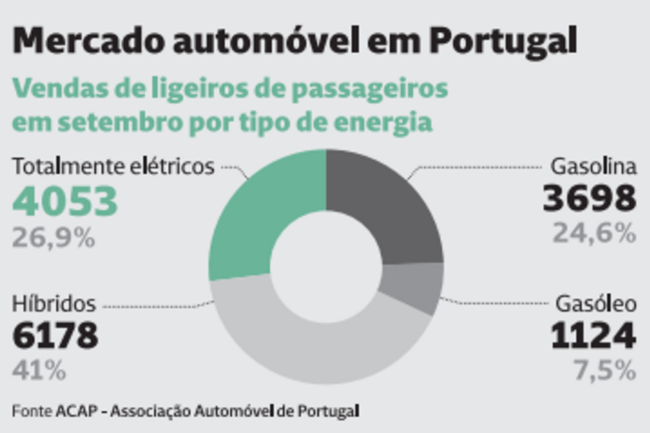 Portugueses compraram 4 mil viaturas sem emissões em setembro.
