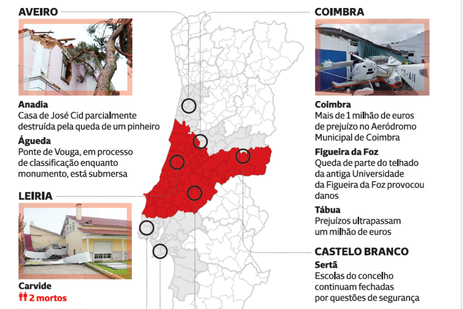 Depressão kristin deixou rasto de destruição pelo País.