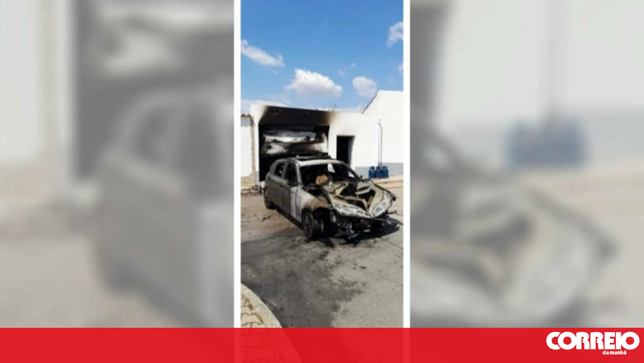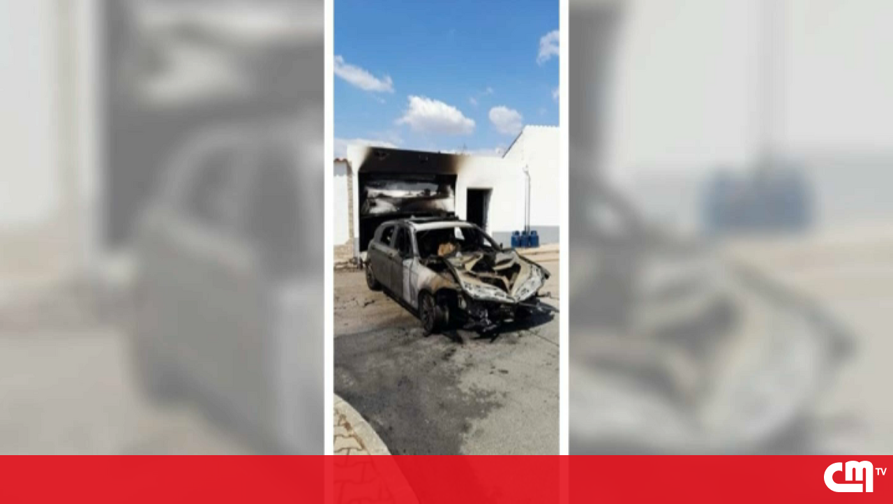 Carro fica totalmente destruído em incêndio numa garagem em Alvalade Sado