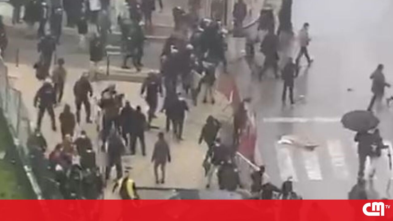 Confrontos entre polícia e manifestantes contra André Ventura em Setúbal. Veja as imagens