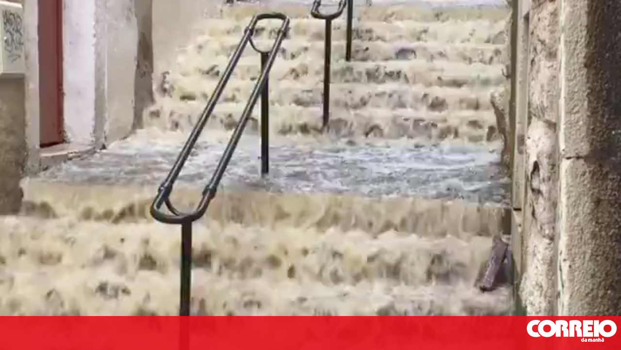 Ruas inundadas devido ao mau tempo na Mouraria