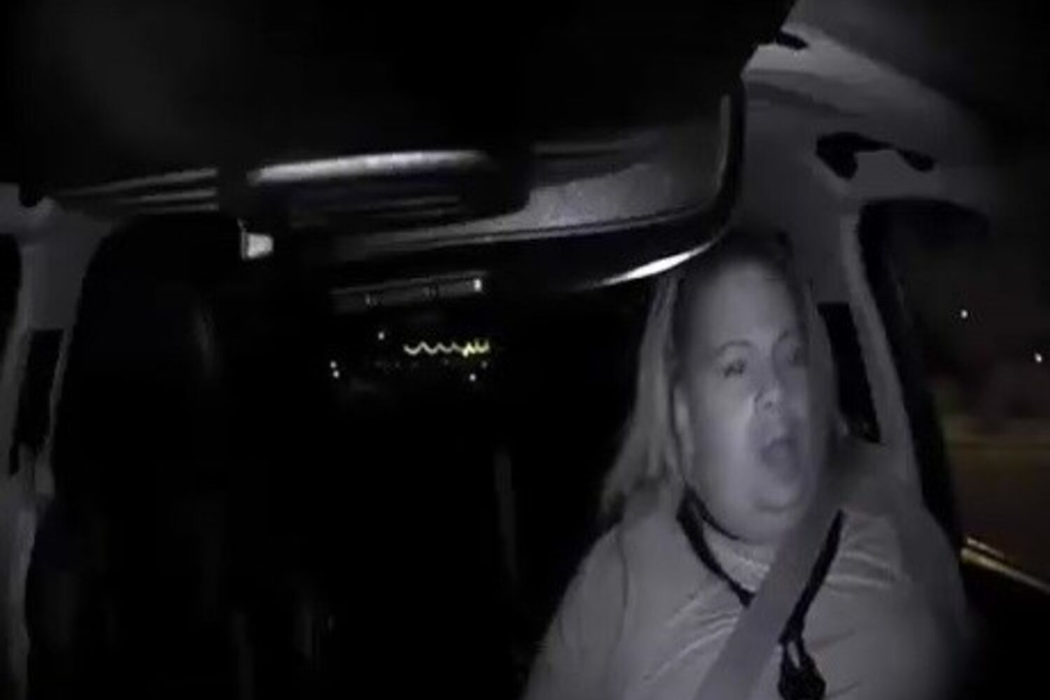 Outra câmara foca alternadamente a pessoa que segue dentro carro. Pelo vídeo percebe-se que a mulher, que está sentada no lugar do condutor, olha repetidamente para baixo para baixo, desviando os olhos da estrada, até ao momento do acidente.
