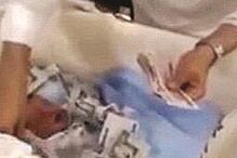 Scott Lee Stevens pediu à mulher, Ruth Stevens, que o embrulhasse com papel de Natal e filmasse o momento em que as crianças abrem o gigante presente deixado na sala.