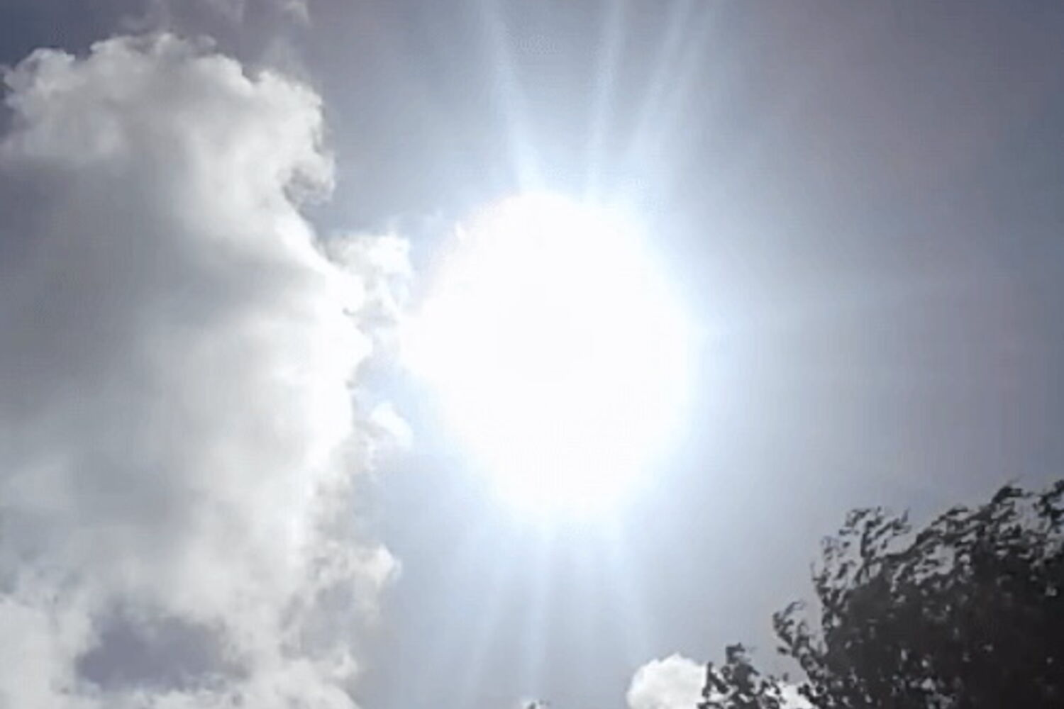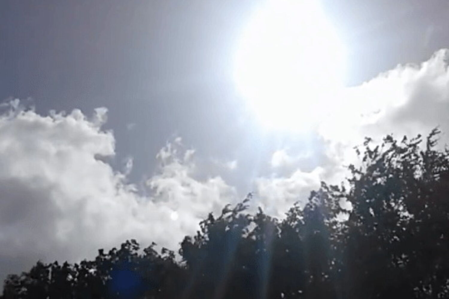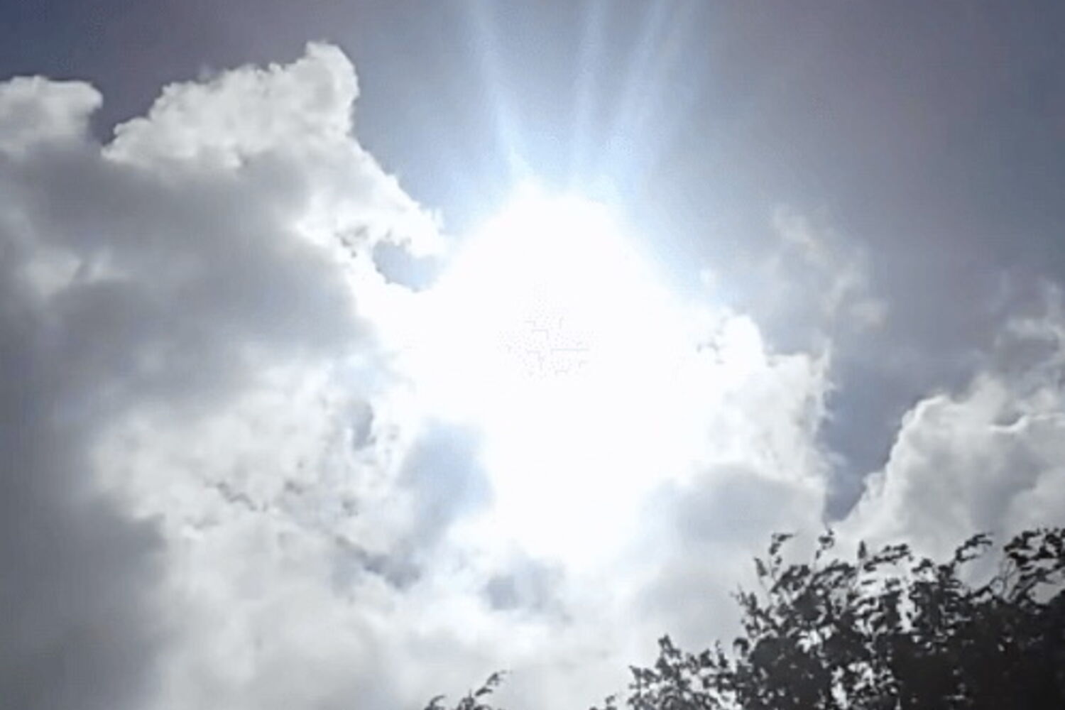 As imagens gravadas no momento mostram o momento em que o sol, rodeado de um luz muito brilhante e com uma tonalidade azulada, irrompe pelas nuvens e arranca uma série de suspiros de exclamação aos presentes.