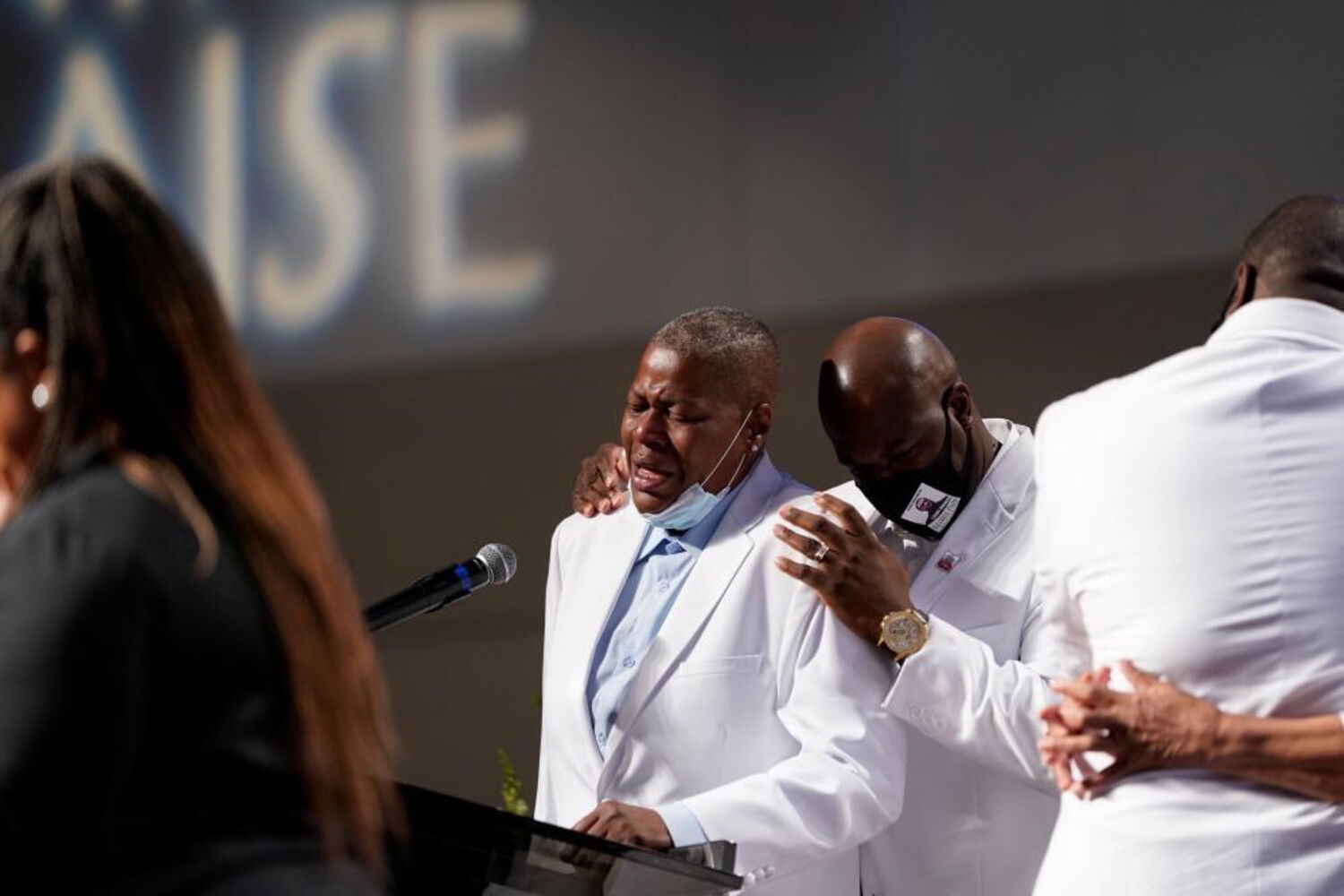 “É hora de celebrar a sua vida”, afirmou a pastora Mia Wright durante a cerimónia.