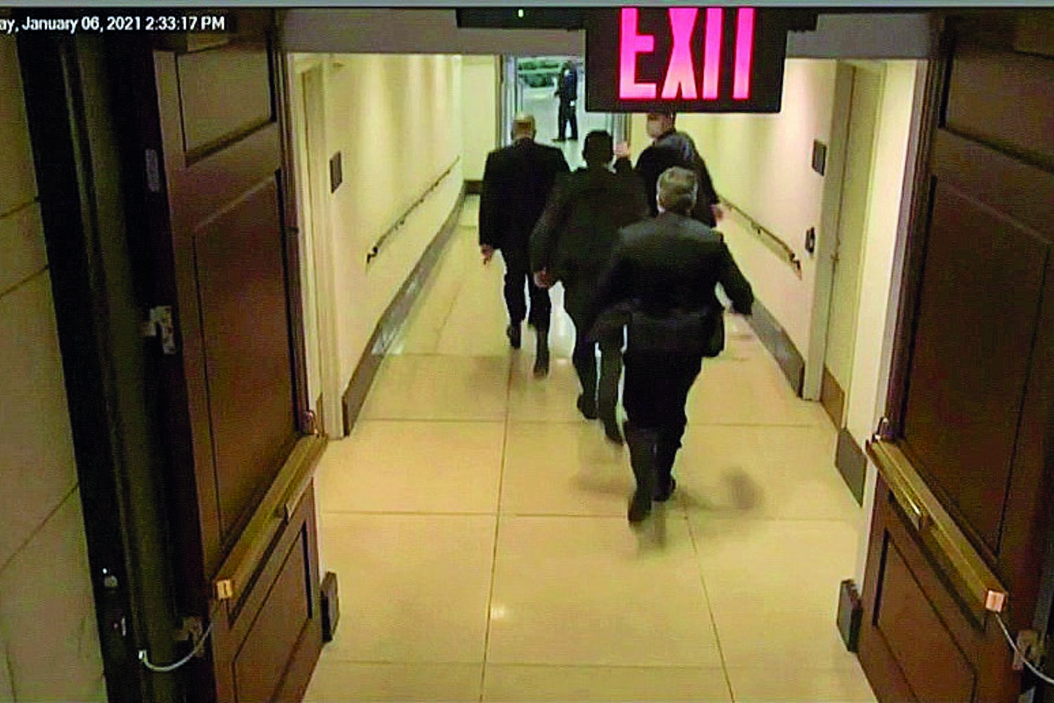 Vídeos mostrados no julgamento do impeachmente de Trump mostram que ex-vice-presidente Mike Pence e senadores fugiram aos apoiantes de Trump no último momento.