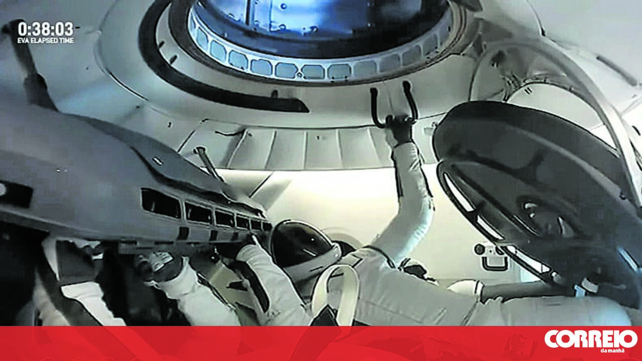 Jared Isaacman, de 41 anos, foi o primeiro a abrir a escotilha da ‘Crew Dragon’ e a aventurar-se no espaço, a 700 quilómetros da superfície terrestre. Eram 11h50 (hora de Lisboa). Saiu lentamente da cápsula, até meio corpo, e levantou o braço esquerdo em direção ao Planeta, em jeito de saudação, enquanto mantinha a mão direita firmemente agarrada a uma espécie de corrimão. Um pequeno gesto para o homem, um passo gigante para a indústria espacial comercial.