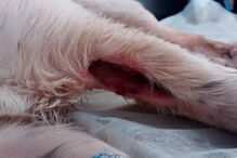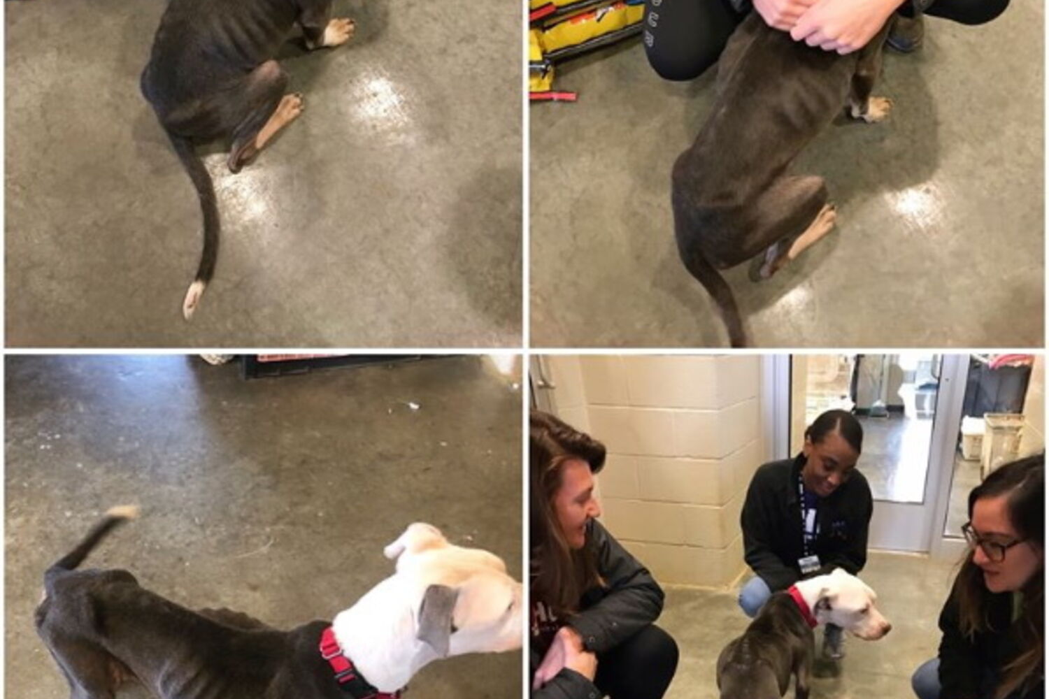 Deixada à porta do local, a cadela apresentava uma extrema magreza, pesando menos 9 quilos do que o saudável para o seu porte e raça.