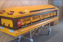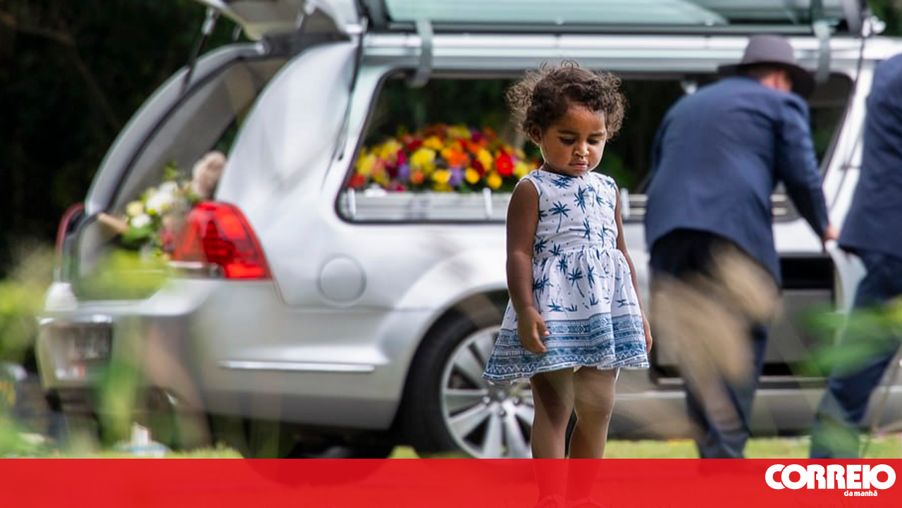 O caixão estava decorado com flores coloridas e balões em tons de azul, tendo sido levado para a funerária ao som da música tradicional das Ilhas Estreito de Torres, na Austrália.