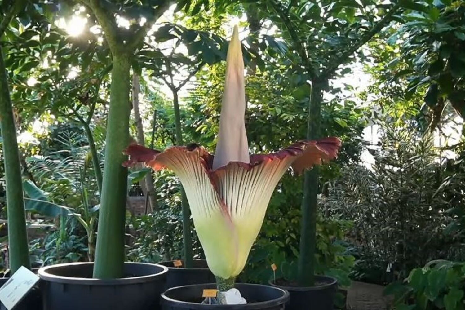 A maior flor de Mundo, uma Amorphophallus titanium, está a desabrochar desde esta quinta-feira no Jardim Botânico da Bélgica, em Meise. A floração desta espécie de Sumatra dura apenas 72 horas e a flor atingir entre 1,5 metros a 3 metros.