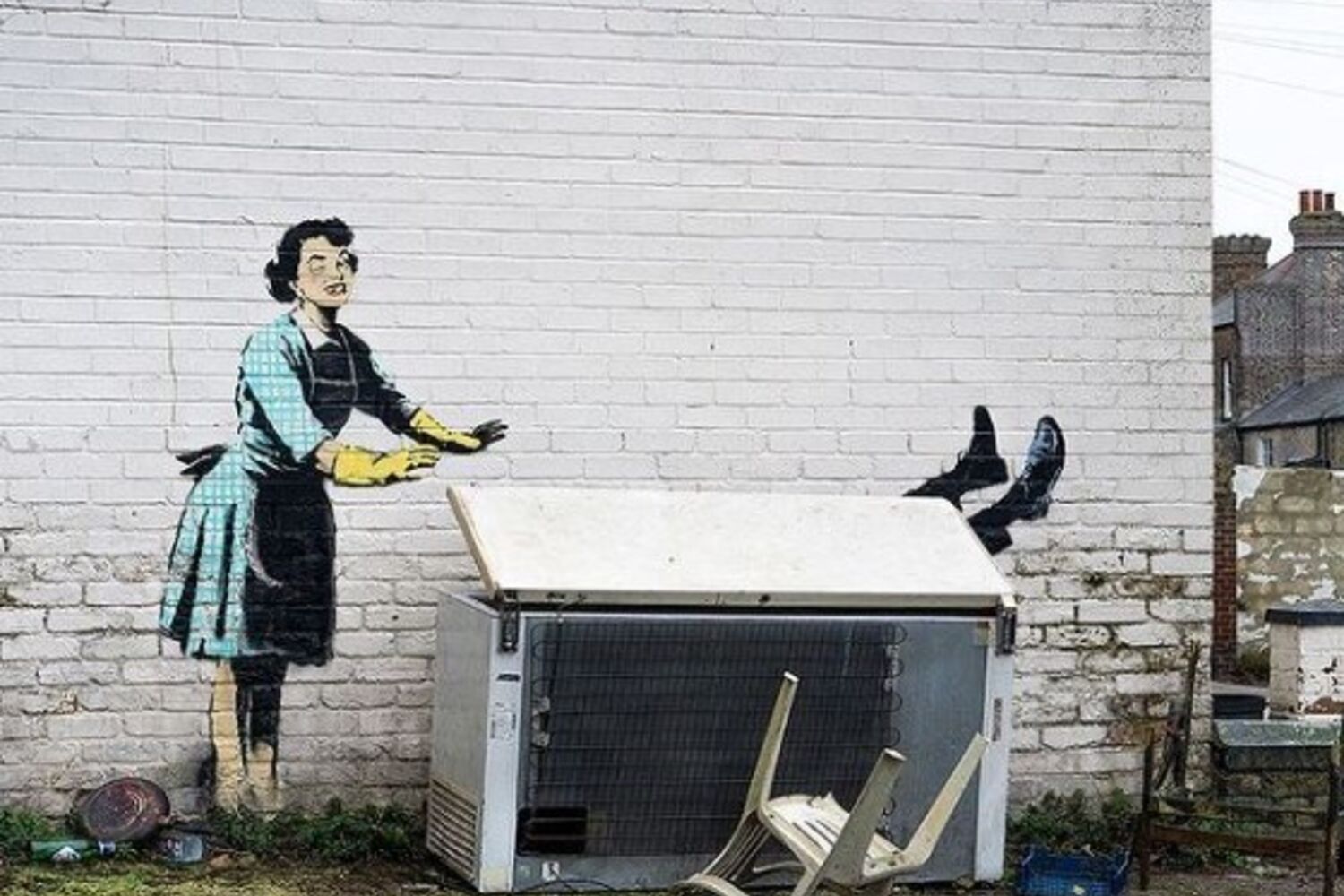A nova obra intitulada "Valentine's day mascara", (Maquilhagem de Dia dos Namorados, em português), mostra uma mulher vestida com roupas e luvas de limpeza de estilo 1950, aparentemente a empurrar alguém - presumivelmente o seu marido - para dentro de um congelador. Tudo o que se pode ver é as suas pernas a sair da ponta, de acordo com o BristolLive.