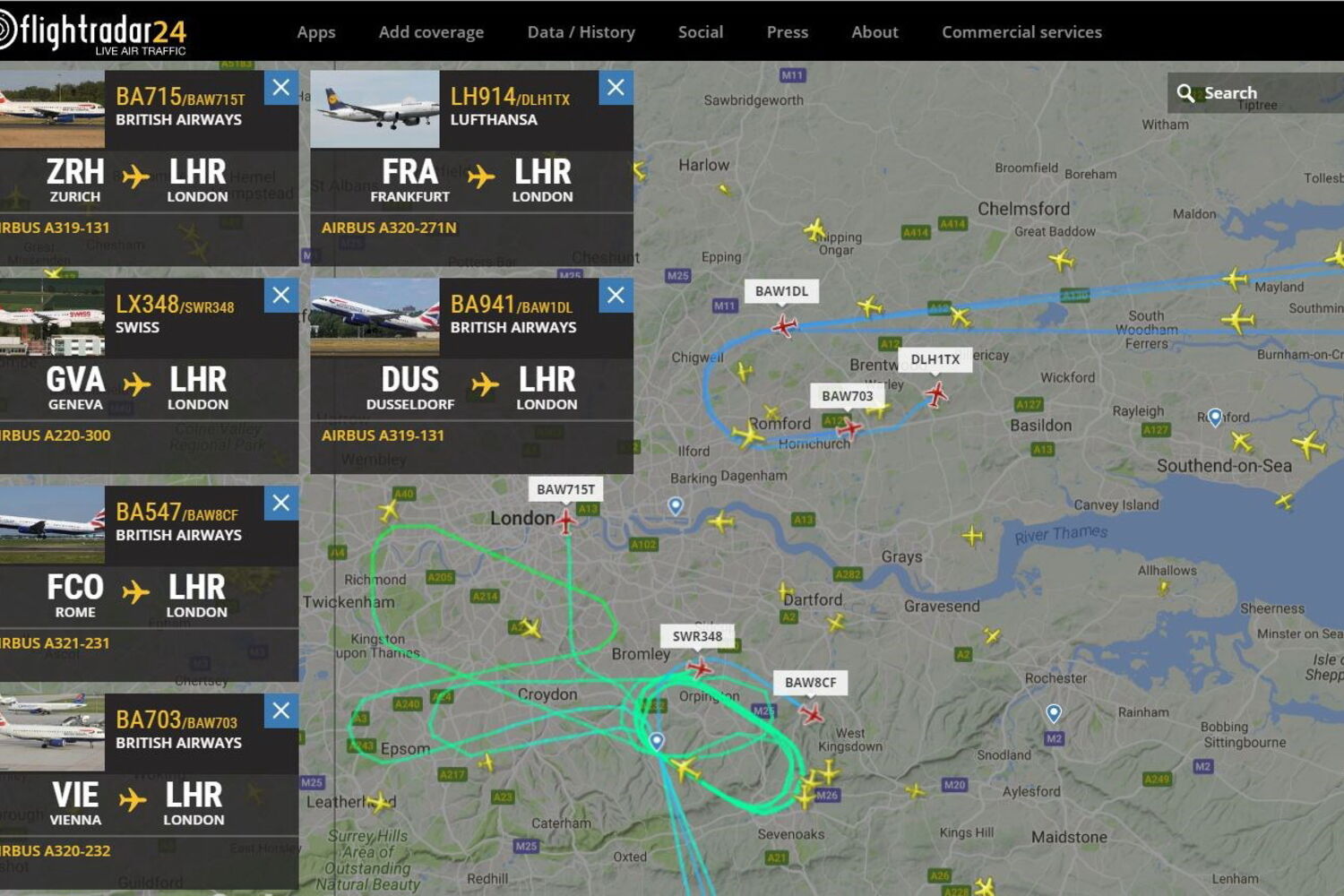 Centenas de ligações estão a ser afetadas: várias foram interrompidas e outras acabaram por ser desviadas para os aeroportos de Gatwick e Stansted, também em Londres, avança a BBC.