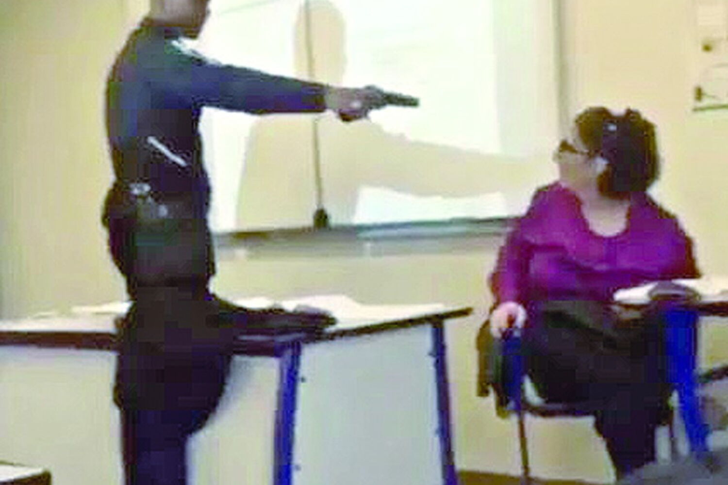 O momento foi filmado e divulgado nas redes sociais por um colega de turma e no vídeo é possível ouvir-se o jovem, de 15 anos, a exigir à professora para lhe retirar a falta de presença, ao mesmo tempo que lhe apontava uma pistola à cabeça.