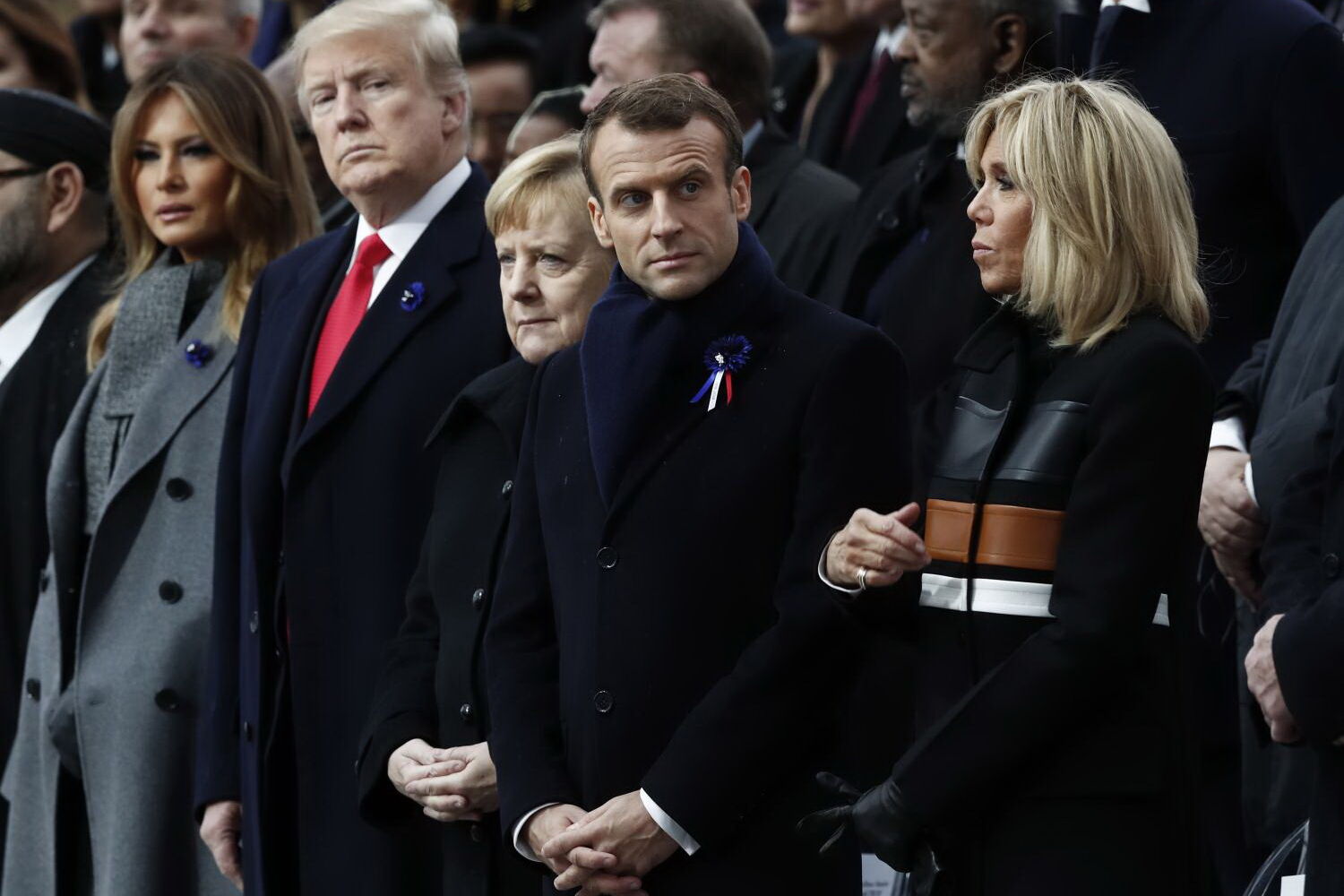 Os olhos do Mundo estavam postos em Paris. O dia começou com uma cerimónia num dos locais icónicos da cidade. Foi no Arco do Triunfo que se ouviu o hino francês e que foi feita uma corrente humana que uniu estudantes e chefes de Estado e de governo como homenagem aos milhões que perderam a vida em combate. O presidente francês, anfitrião das comemorações, dirigiu-se aos homólogos e chefes de governo reunidos na Cidade Luz: "Juntos podemos combater a fome, as desigualdades e a ignorância."