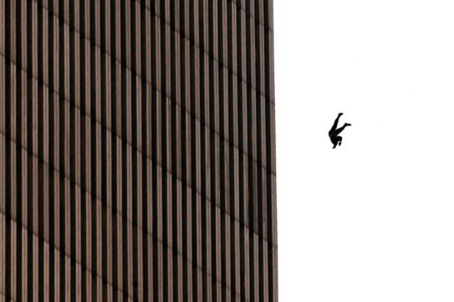 "The Falling Man", como ficou para sempre apelidada, é uma imagem real que conta a história de dezenas de pessoas que se encontravam presas nas torres e se atiraram pela janela por perceberem que não iriam conseguir sair a tempo.
