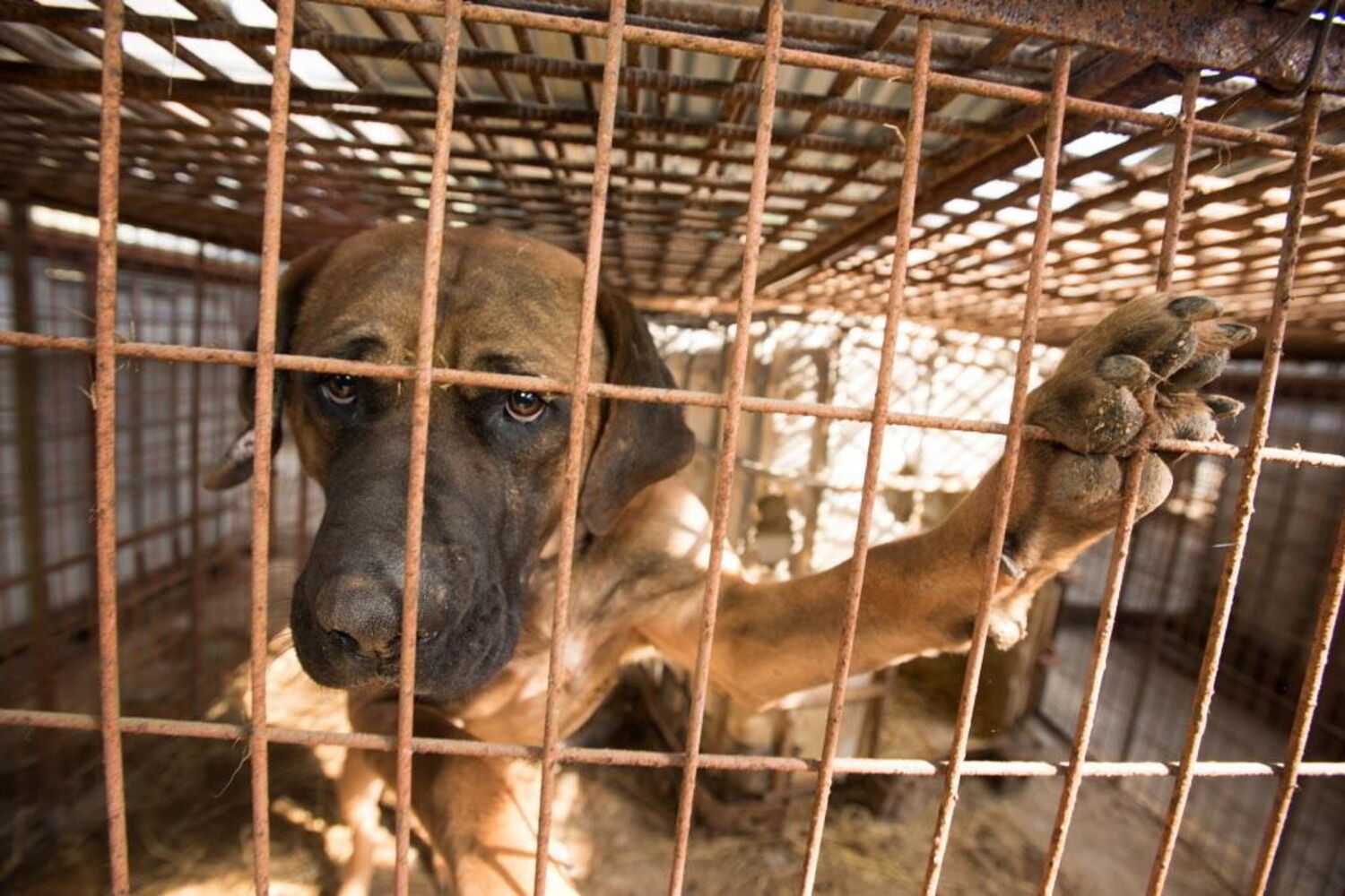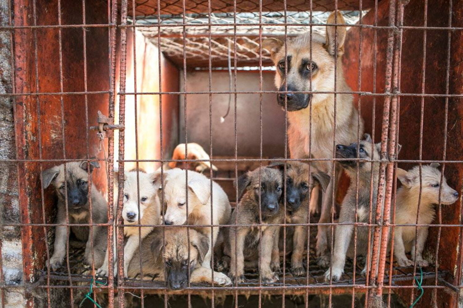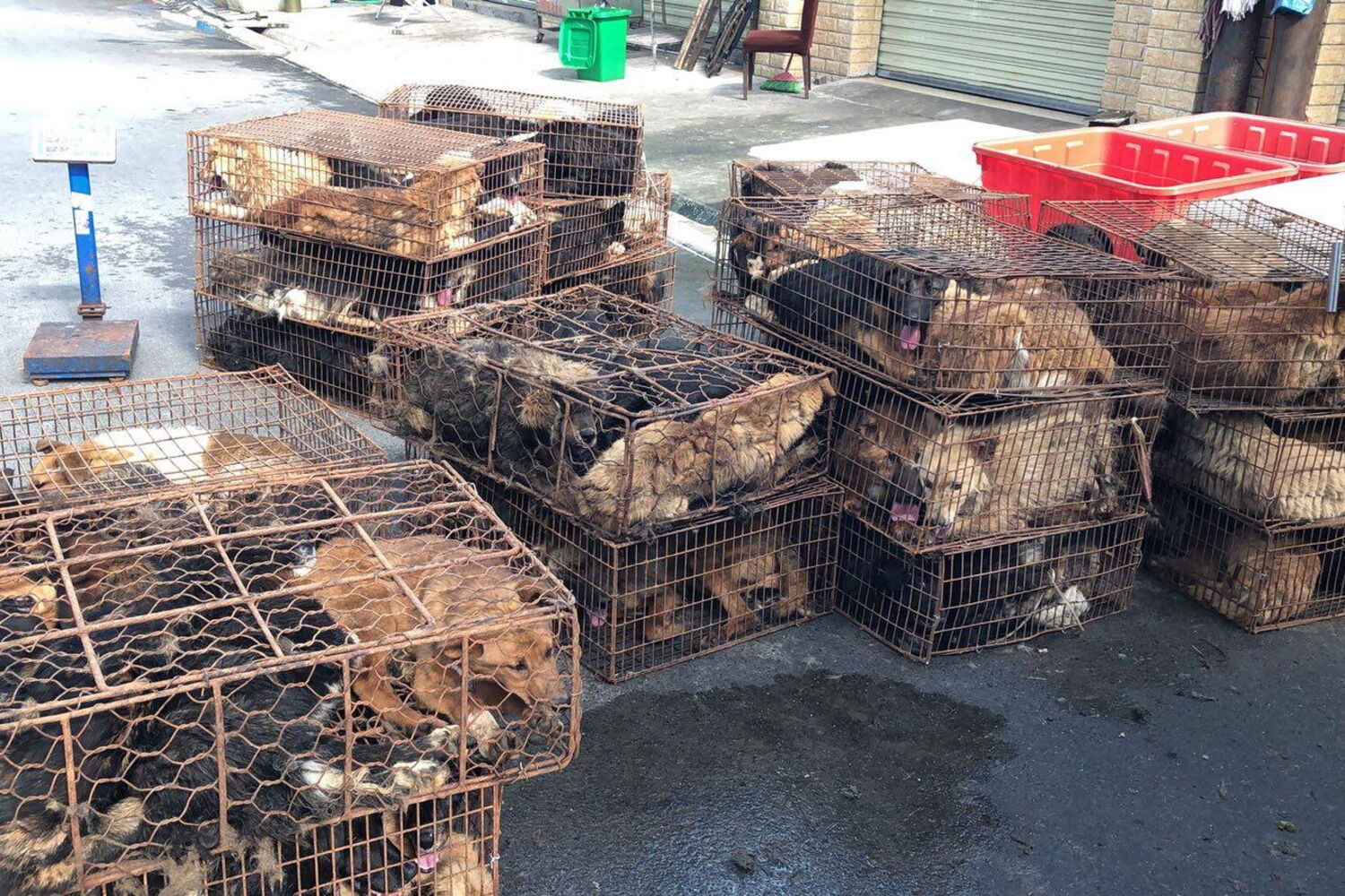 Mais de 60 cães desnutridos foram resgatados, a 12 de junho, em Yulin, República Popular da China. Todos os anos, milhares de cães são mortos antes de serem comidos pelos moradores de Yulli, num festival de comida controverso.