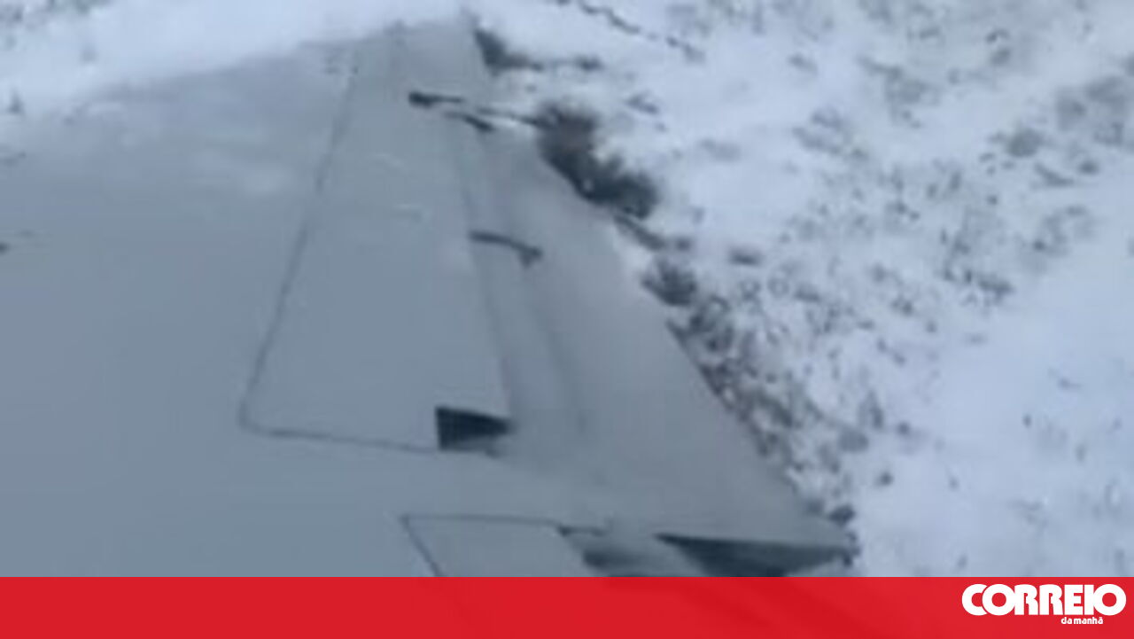 Um avião da American Eagle, Embraer E-145, despistou-se no aeroporto de Chicago, Estados Unidos, coberto de neve e gelo.
