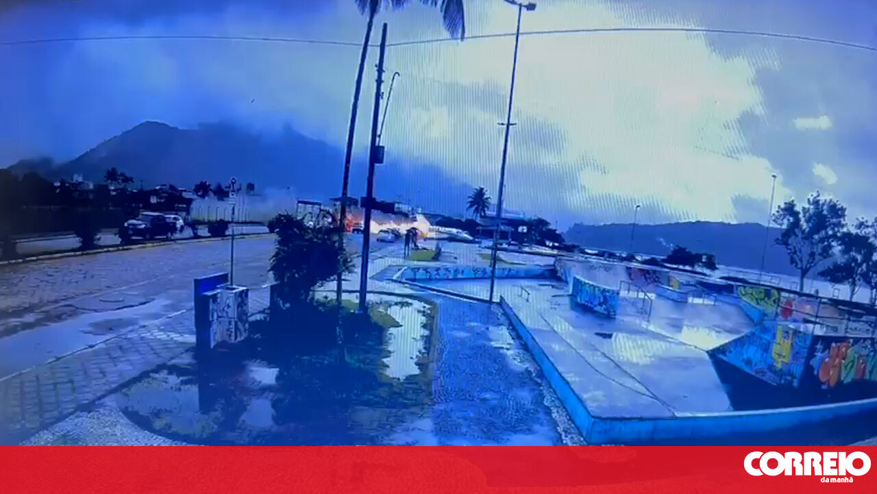 O momento em que pequeno avião invade praia e explode no litoral de São Paulo