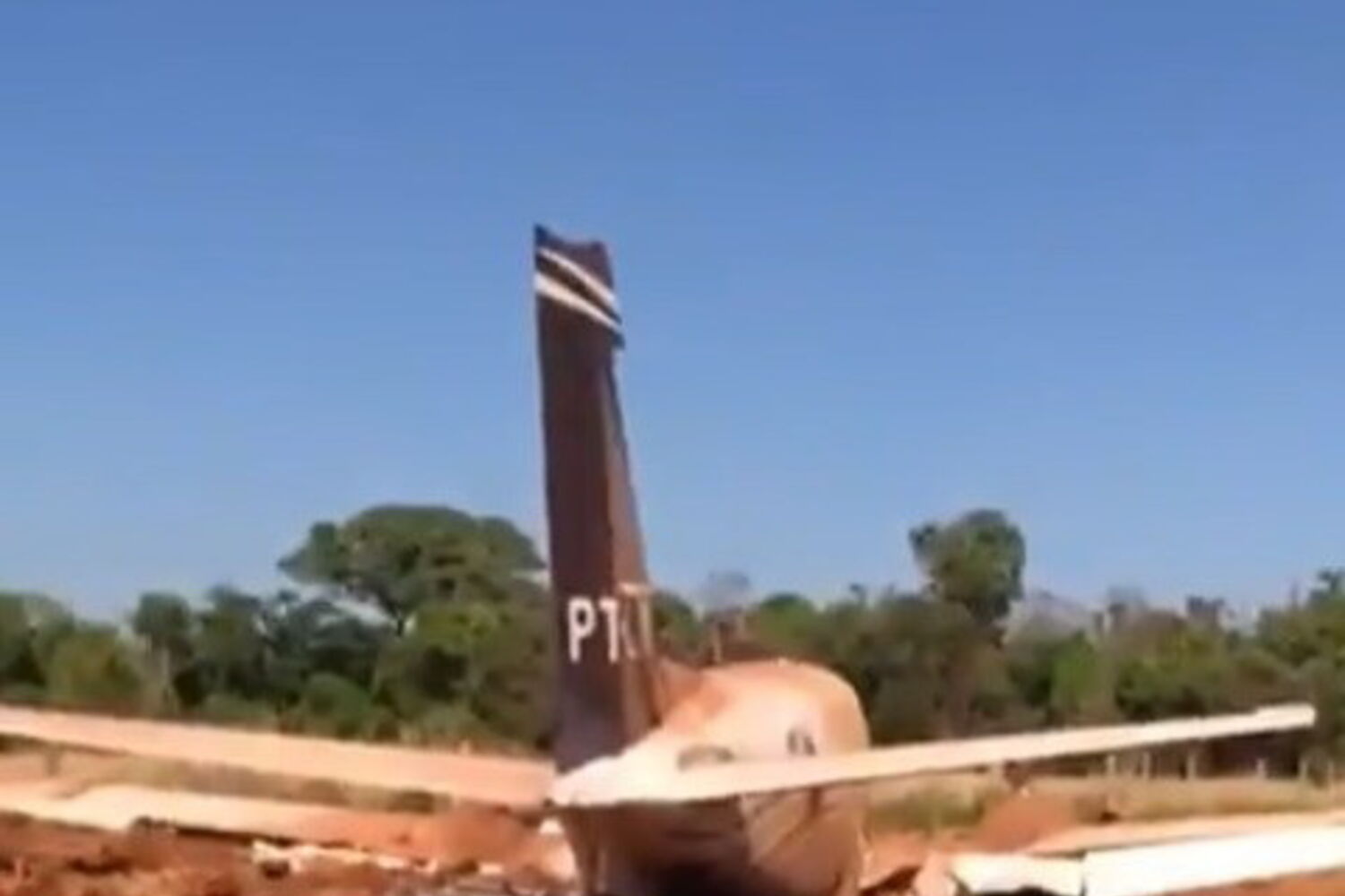 O trem de aterragem terá partido ao tocar na pista, em Itapaci, na região centro do estado de Goiás e terá sido a causa do problema que obrigou o avião a aterrar fora da pista, numa zona de plantações.