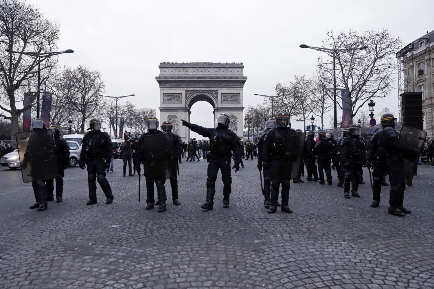 Este sábado, apelidado de "Ato VII", começou com menos de uma centena de pessoas nos Campos Elísios e com medidas de segurança reduzidas comparando com os protestos de novembro e do início de dezembro. A polícia estava presente, mas apenas fez vistorias aleatórias a quem passava na avenida e todas as lojas e restaurantes estiveram abertos.