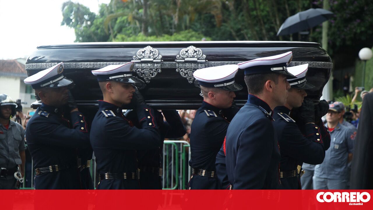 O caixão com o corpo do antigo futebolista Pelé, que morreu na quinta-feira aos 82 anos, chegou esta terça-feira ao cemitério em que ficará sepultado, após um cortejo de quatro horas pelas principais ruas de Santos.