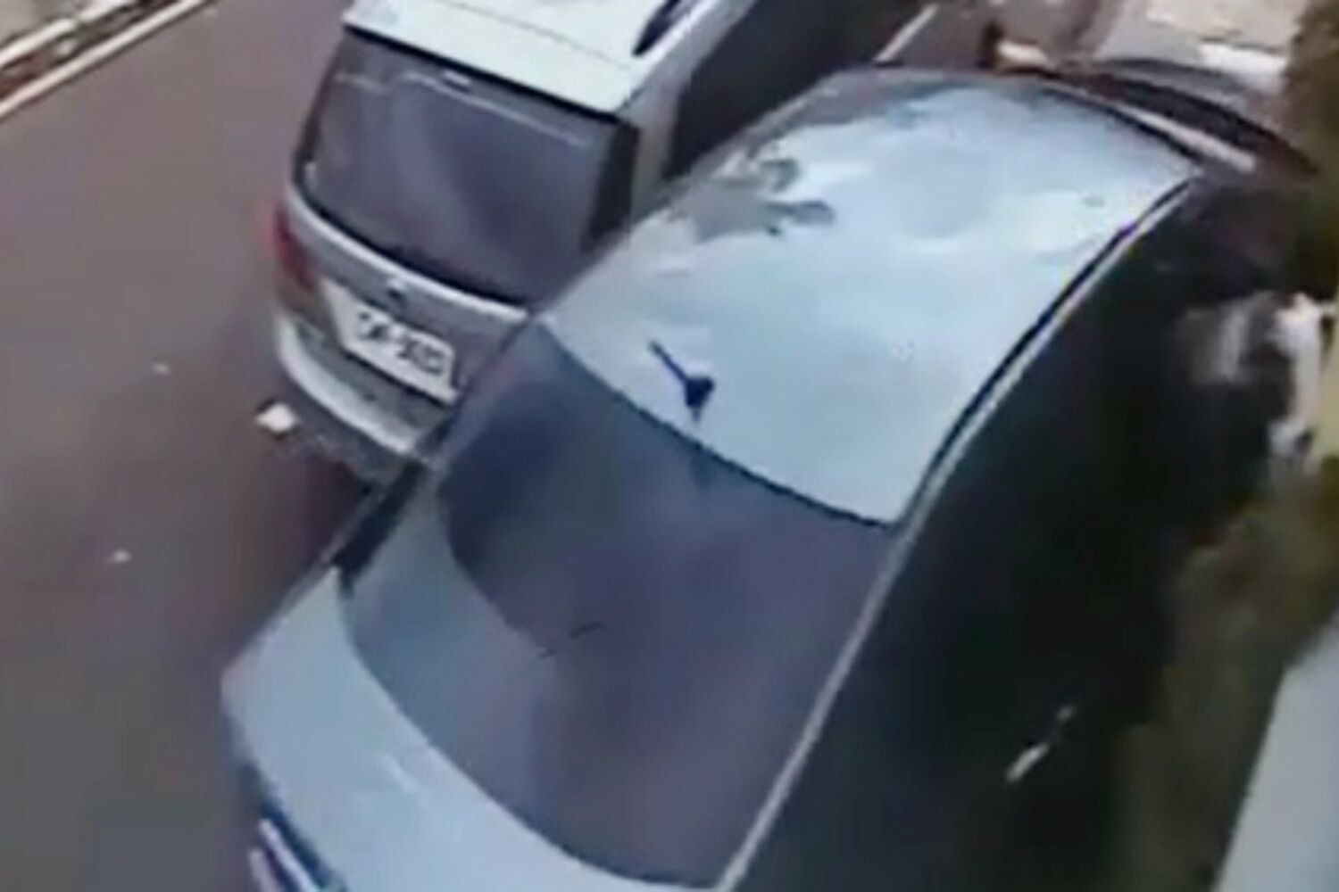 A colisão foi gravada por uma câmara de videovigilância que registou o momento em que um dos condutores perde o controlo do carro e bate em dois carros estacionados. Nas imagens é possível ver que um cão, que estava dentro do veículo, é projectado pela janela.