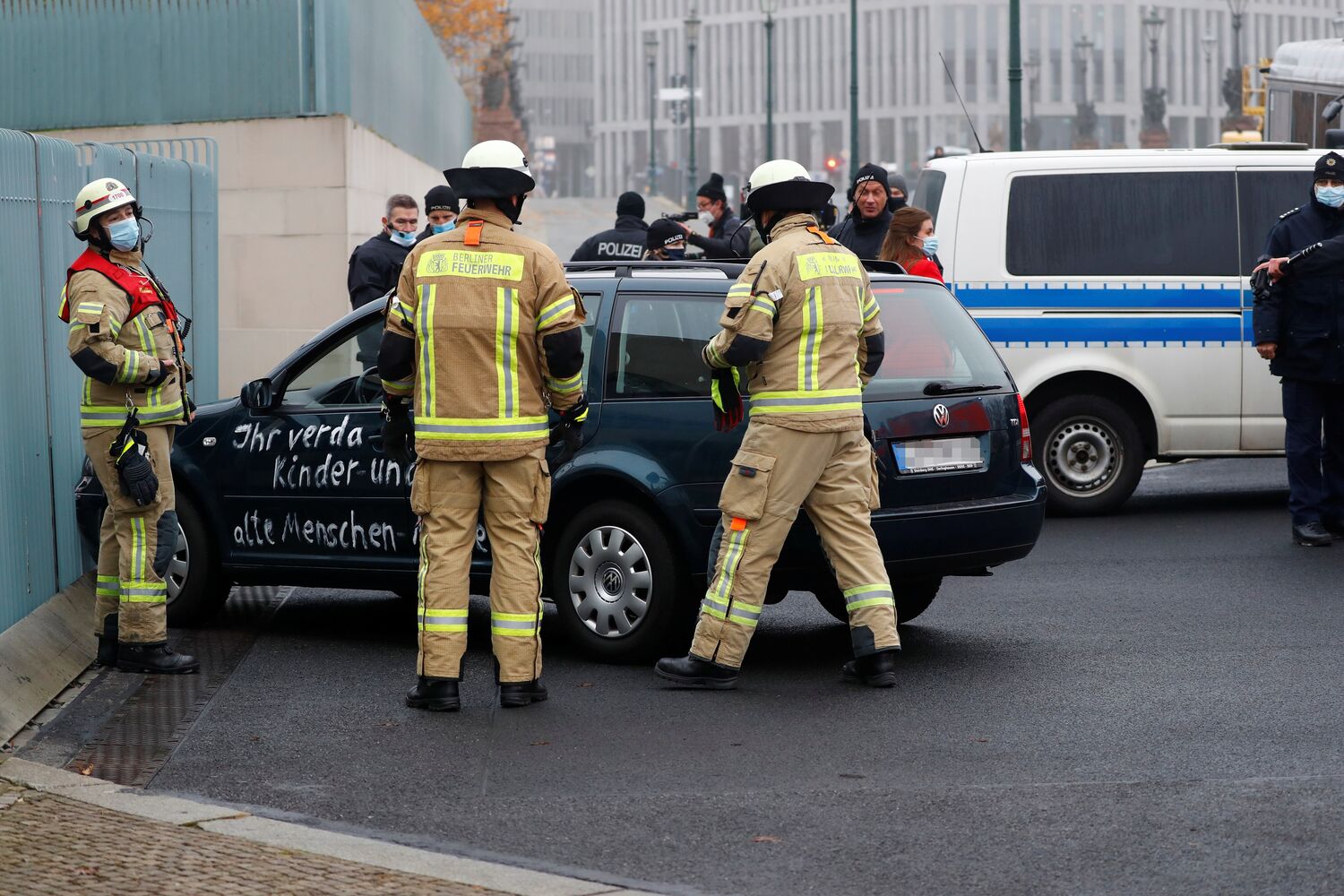 De acordo com a agência de notícias AFP, as equipas de socorro presentes no local confirmaram que o homem que conduzia o automóvel estava a ser tratado numa ambulância que permanecia em frente à chancelaria.