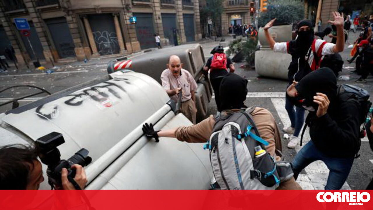 participam no centro de Barcelona numa grande manifestação convocada pelos sindicatos independentistas contra a condenação dos políticos envolvidos na tentativa separatista de 2017.