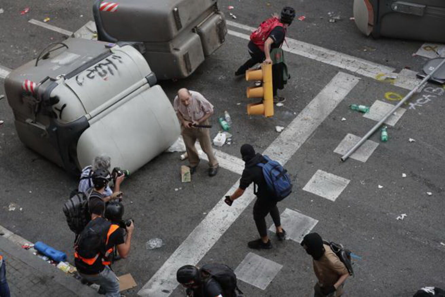 No meio dos confrontos entre os independentistas em protesto na Catalunha e a Polícia Nacional surgiu uma imagem de um idoso a fazer frente aos manifestantes.
