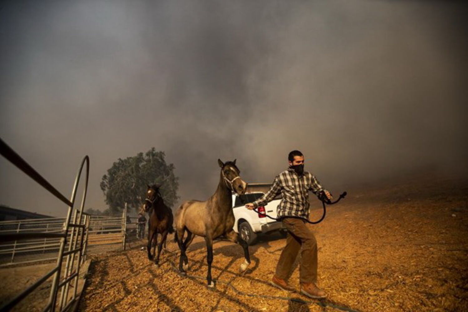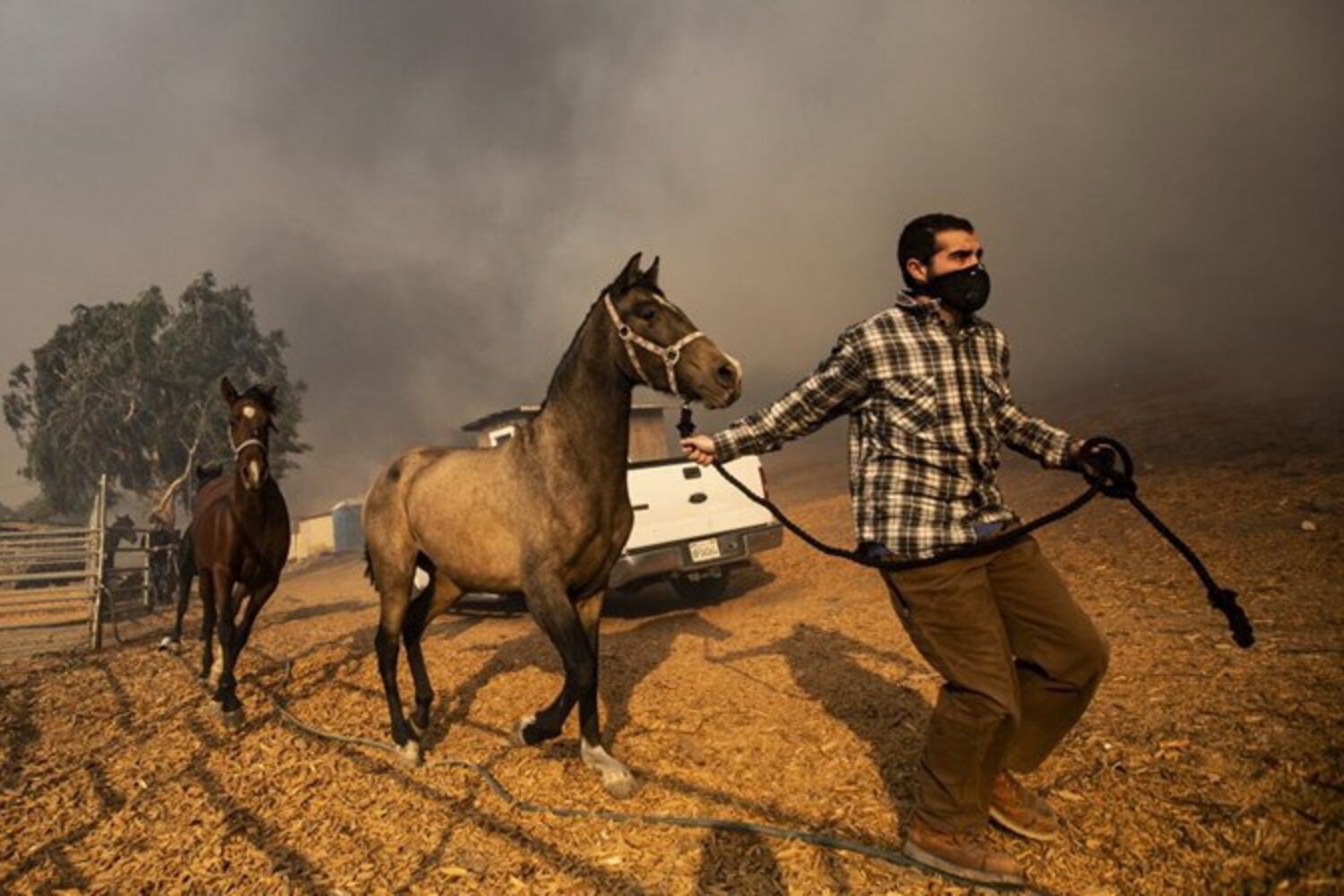 Os fogos na Califórnia, EUA, consumiram quase 31 mil hectares de território. Um deles, o Easy Fire, deflagrou na quarta-feira e atingiu uma zona conhecida pelos ranchos de cavalos. Um destes animais tinha sido salvo quando voltou para trás para ir buscar um cavalo e um potro.